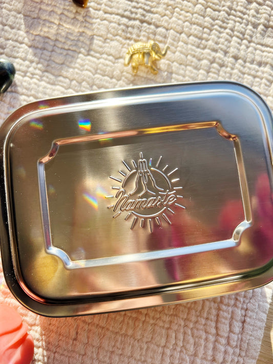 Matboks i rustfritt stĂ„l, stor â ca. 19 x 14,5 x 6,7 cm
