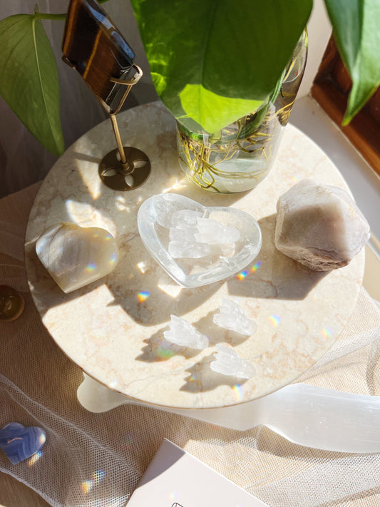 Samlingen inkluderer ametyst, bergkrystall, fluoritt, selenitt, lapis lazuli, sodalitt og andre steiner som fremmer mental klarhet og intuitive evner. Perfekt for meditasjon, studier eller åndelig praksis.