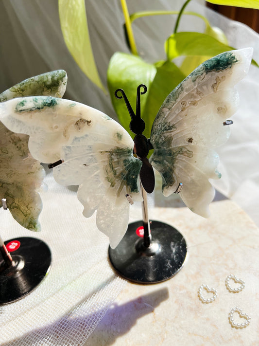 Druzy Moss Agate Hjerte på Metallstativ– #86 150 gr