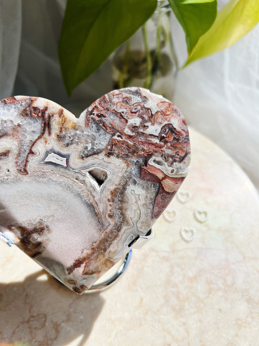 XL Druzy Grå Agat Hjerte på Grått Stativ- #36 238g 12.5cm