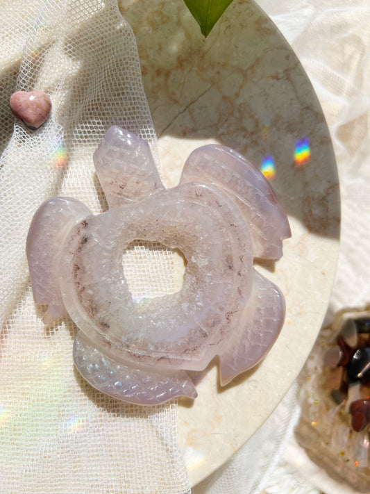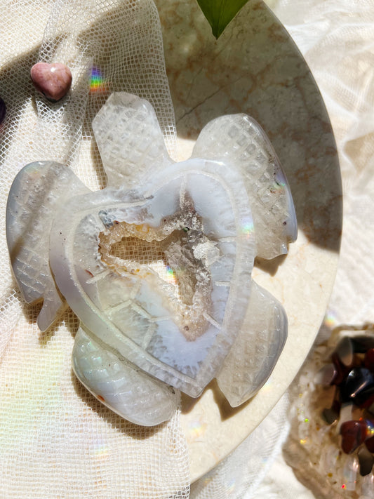 Stor Skilpadde i Grå Agat med Åpen Druzy (9-10cm) #17 150g