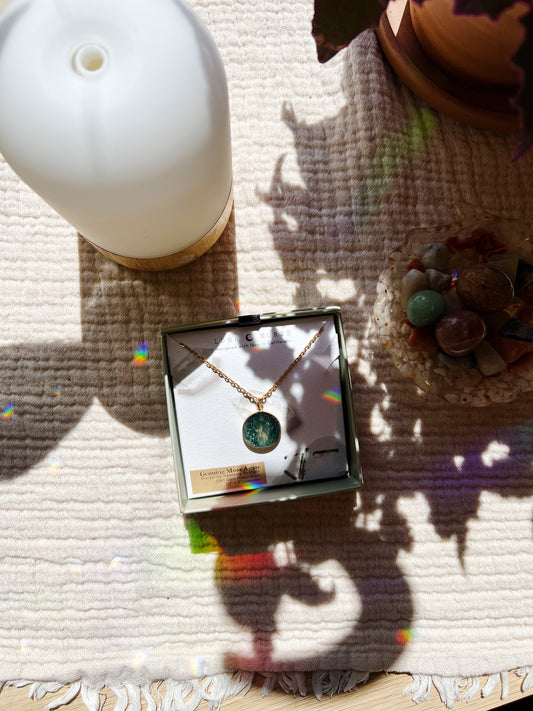 Mini Terrarium Long Medallion Halskjede - Moss Agate