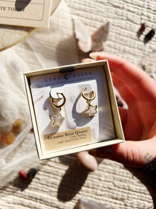 Star Gazing Huggie Hoop Øreringer - Rosenkvarts