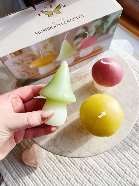 Sett med 3 Pastell Sopp Stearinlys