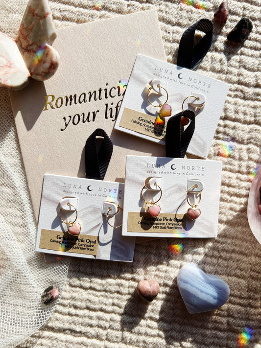 Conversation Heart Mini Hoop Øreringer - Rosa Opal