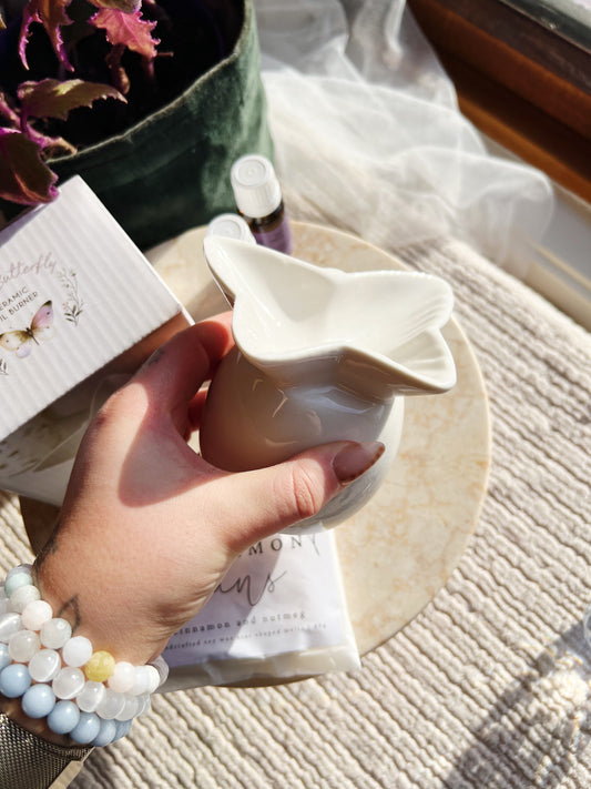 Hvit Sommerfugl Olje Og Wax Melt Brenner
