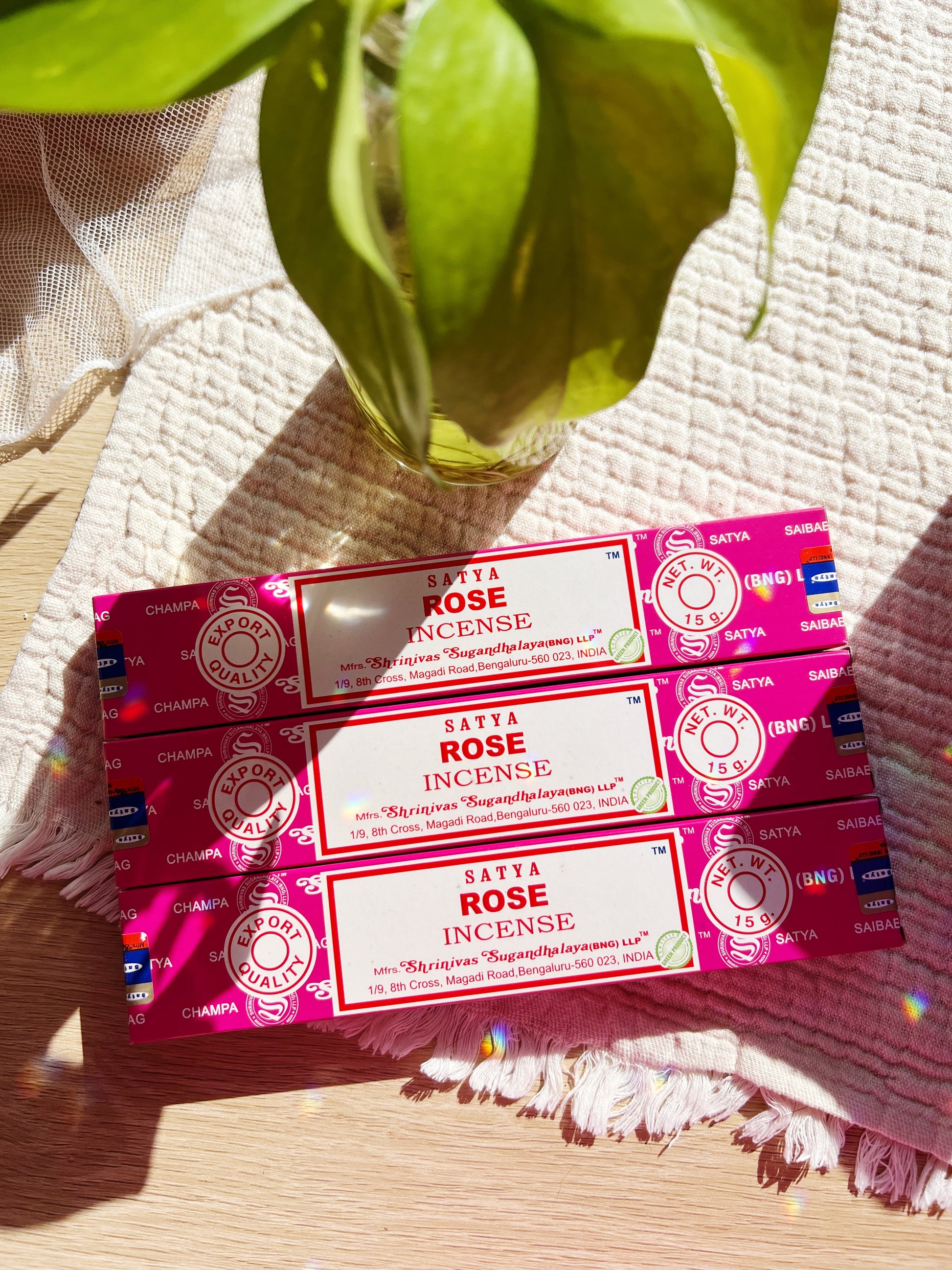 La roen senke seg med den klassiske og delikate duften av rose – kjent for å dempe uro og støtte emosjonell balanse. Disse røkelsespinnene fra Satya er håndlaget i India med ingredienser av høy kvalitet, og er eteriske følgesvenner for meditasjon, egenpleie og indre ro.