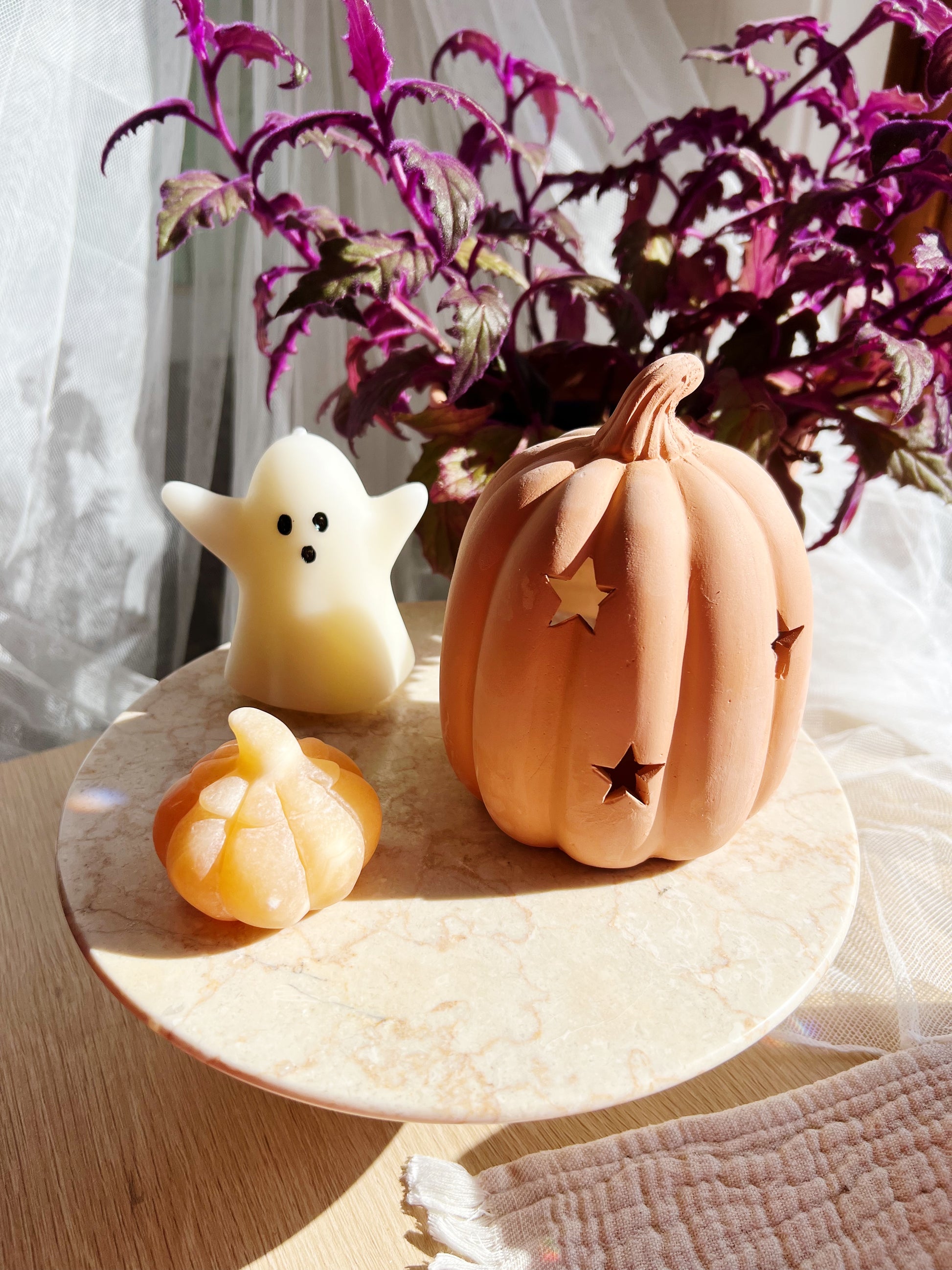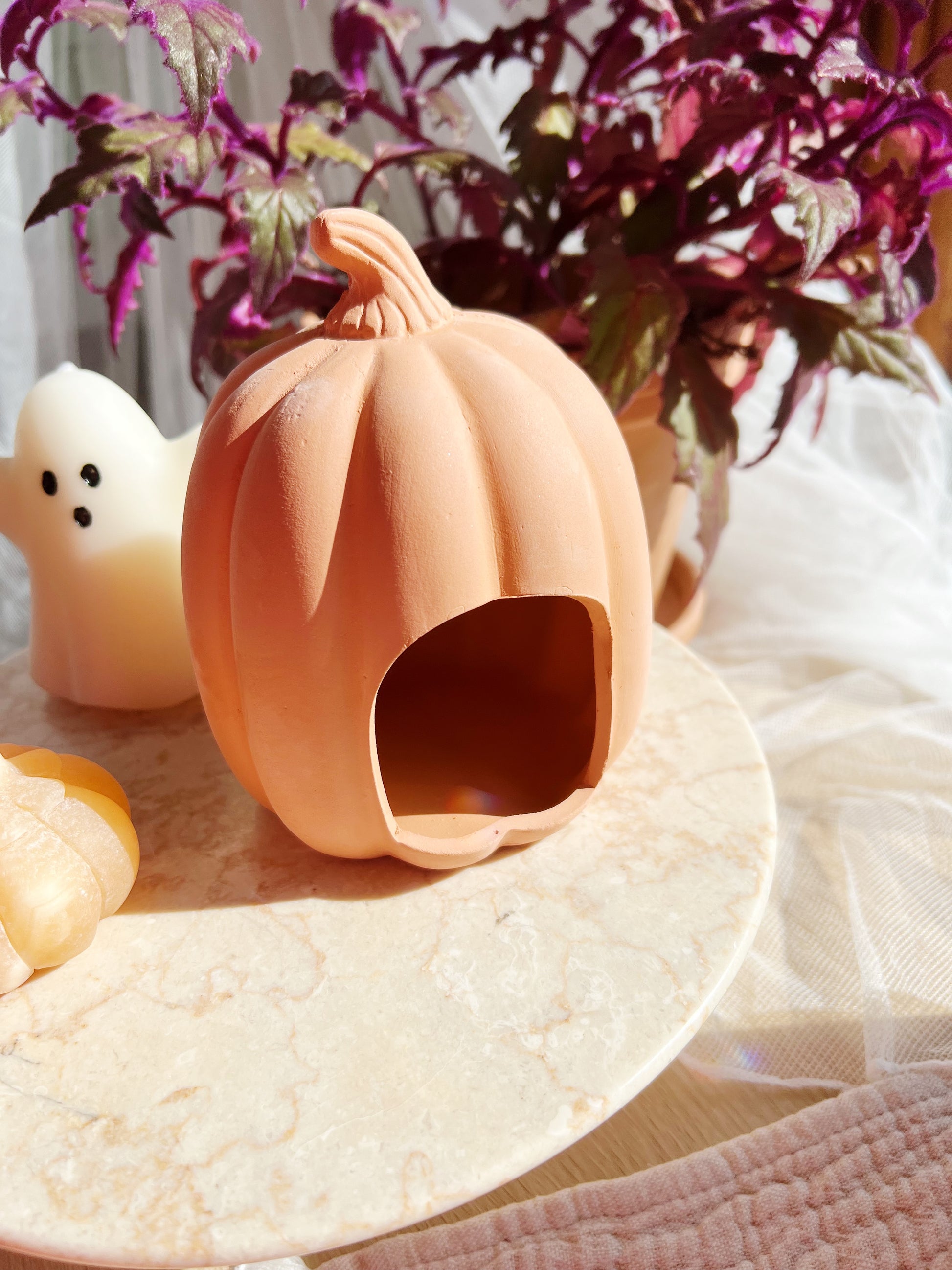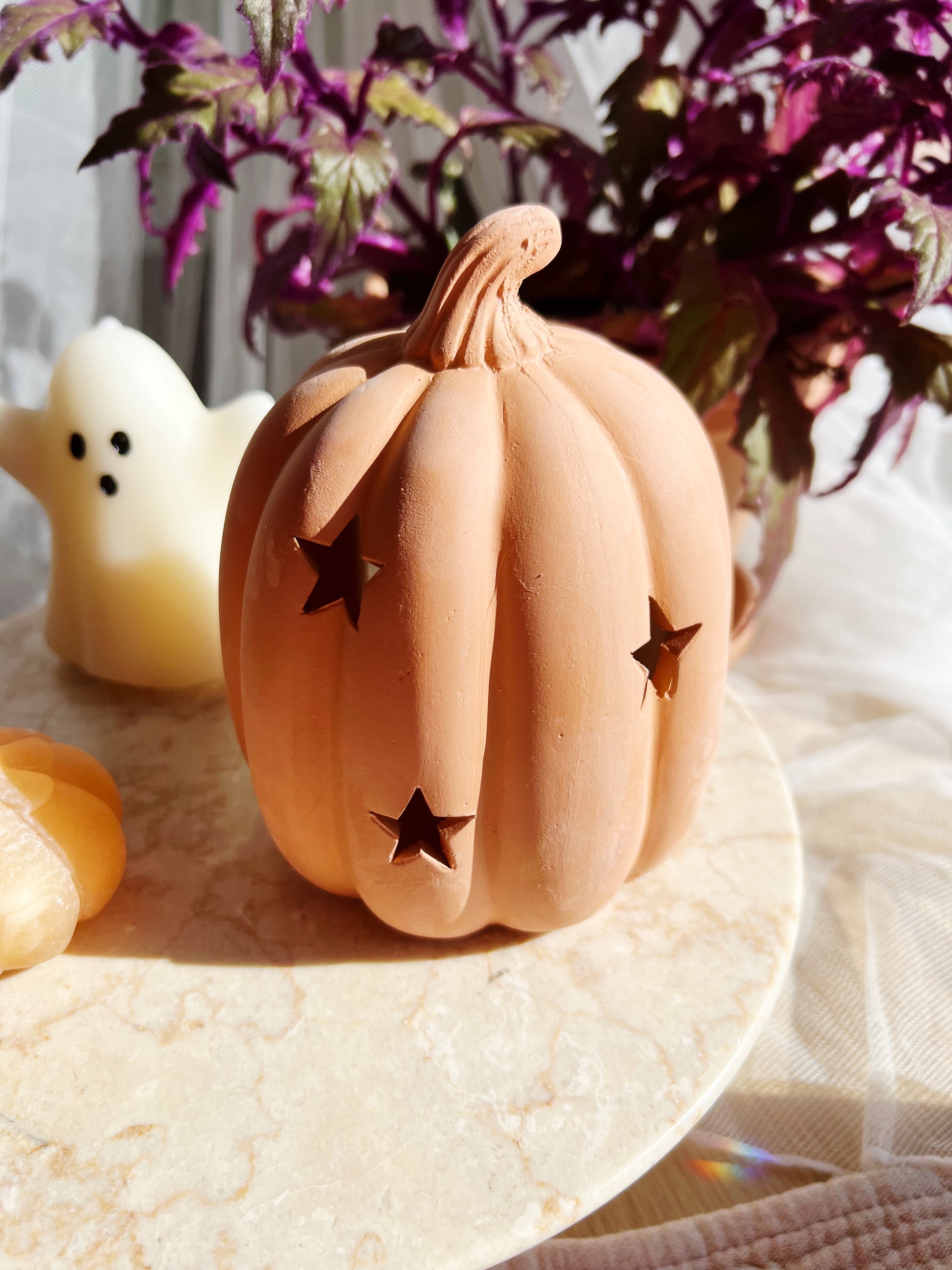 Dekorer for høsten og Halloween i diskret stil med denne telysholderen i terrakottagresskar med utskårne stjernedetaljer. Med et tent stearinlys inni for å lyse opp stjernene, skaper denne tidløse dekorasjonen en magisk glød som kan nytes år etter år.