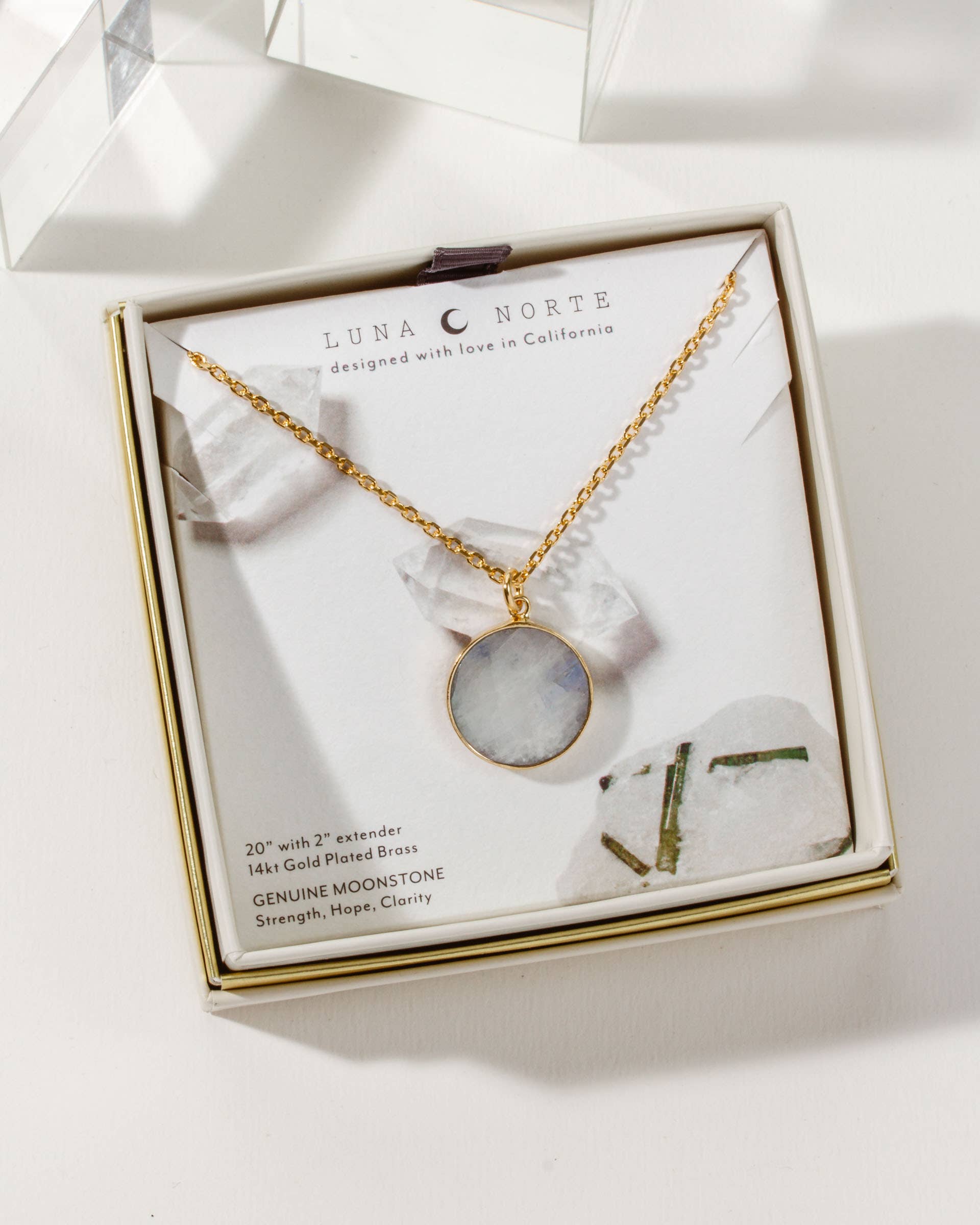 Afterglow Mini Long Medallion Halskjede - Moonstone