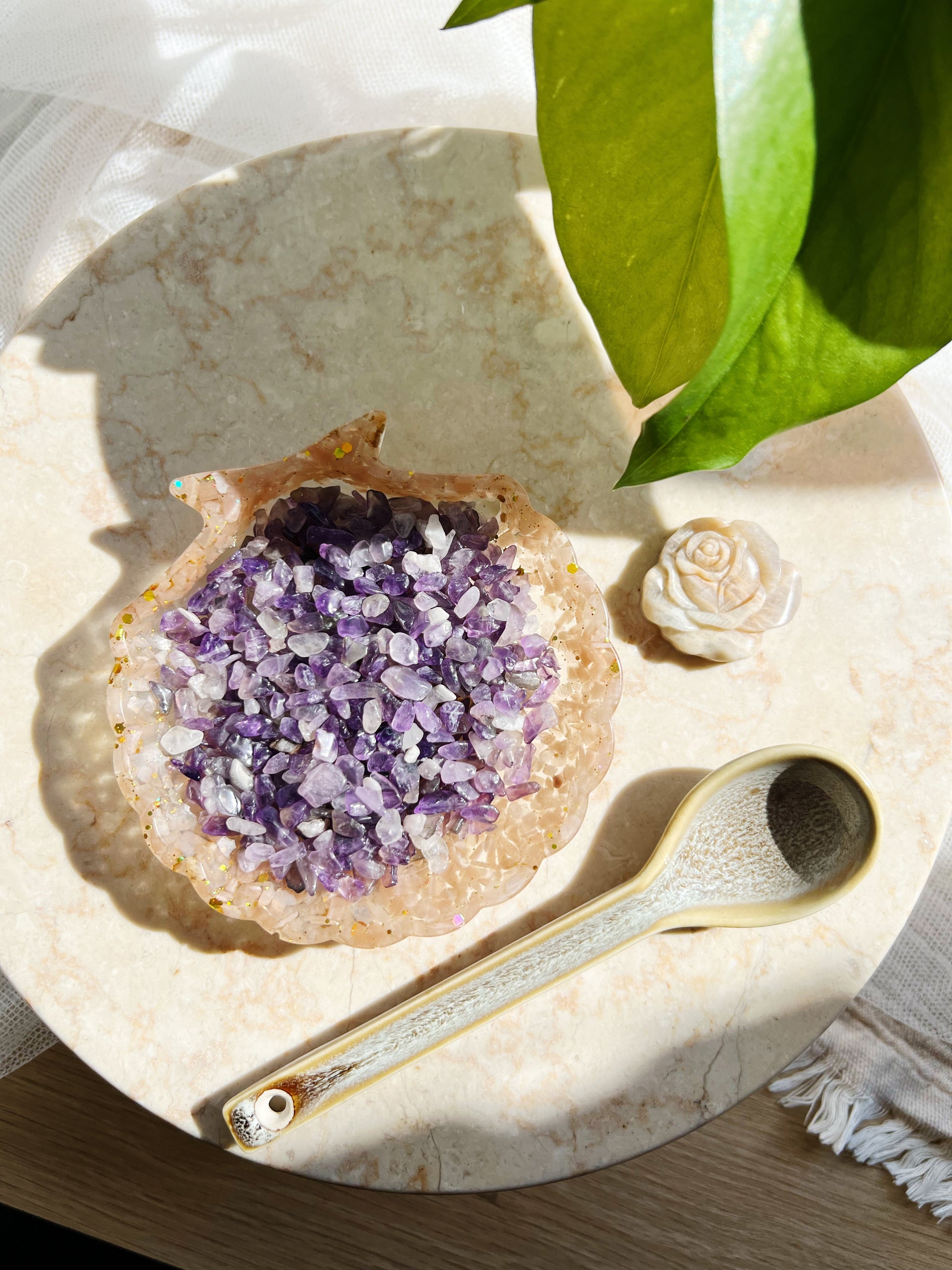 Ametyst beskytter deg fra alle former for negativ energi. En kraftig og beskyttende stein. Med sterke helbredende og rensende egenskaper, beroliger og stimulerer denne steinen sinnet til å gi mentalt fokus, følelsesmessig sentrering og åndelig bevissthet.