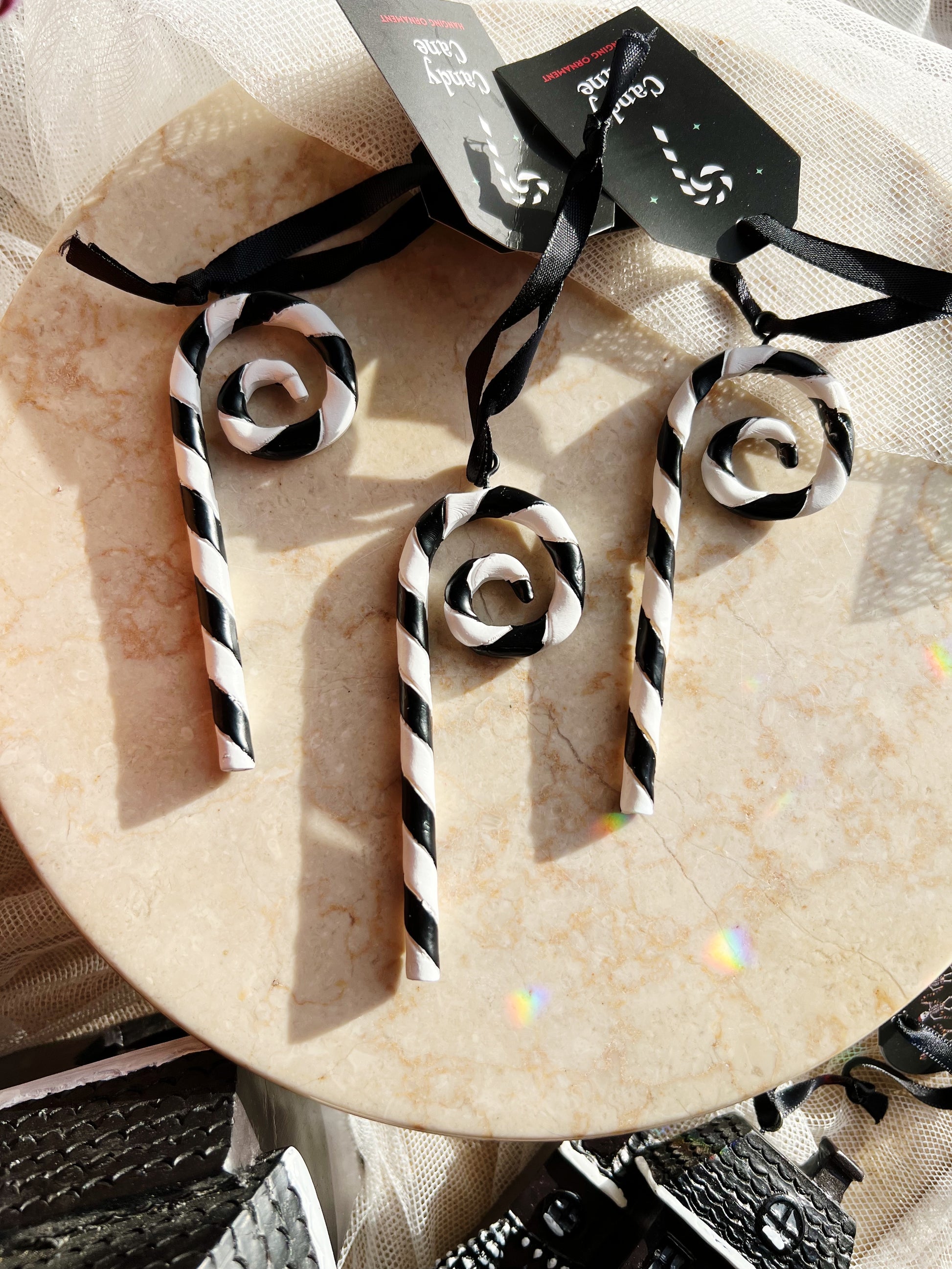 🖤 Sort og Hvit Gotisk Julepynt – Candy Cane 🎄