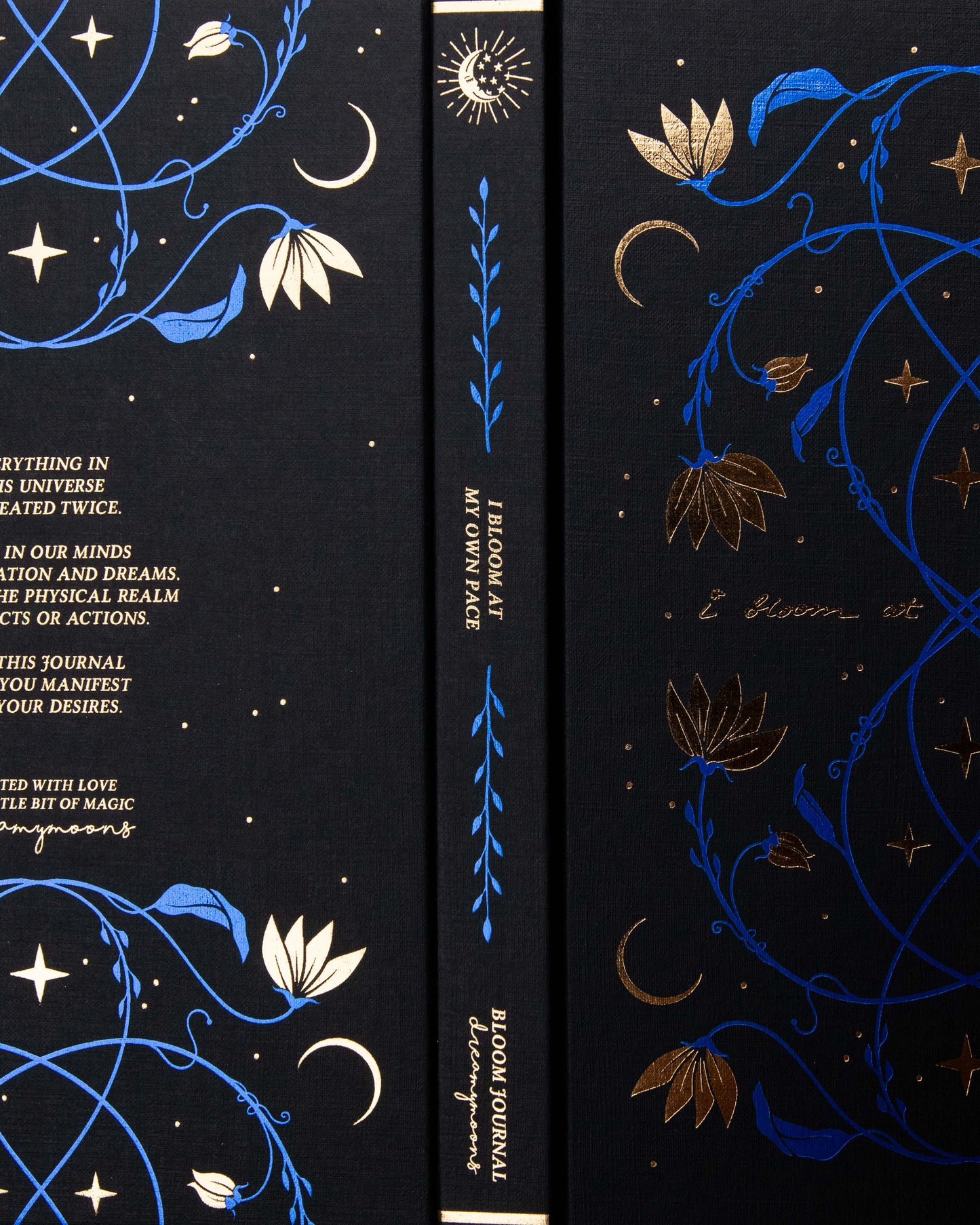 đž BLOOM â A5-journal med hardt omslag og nydelige detaljer i gull og blĂ„ folie