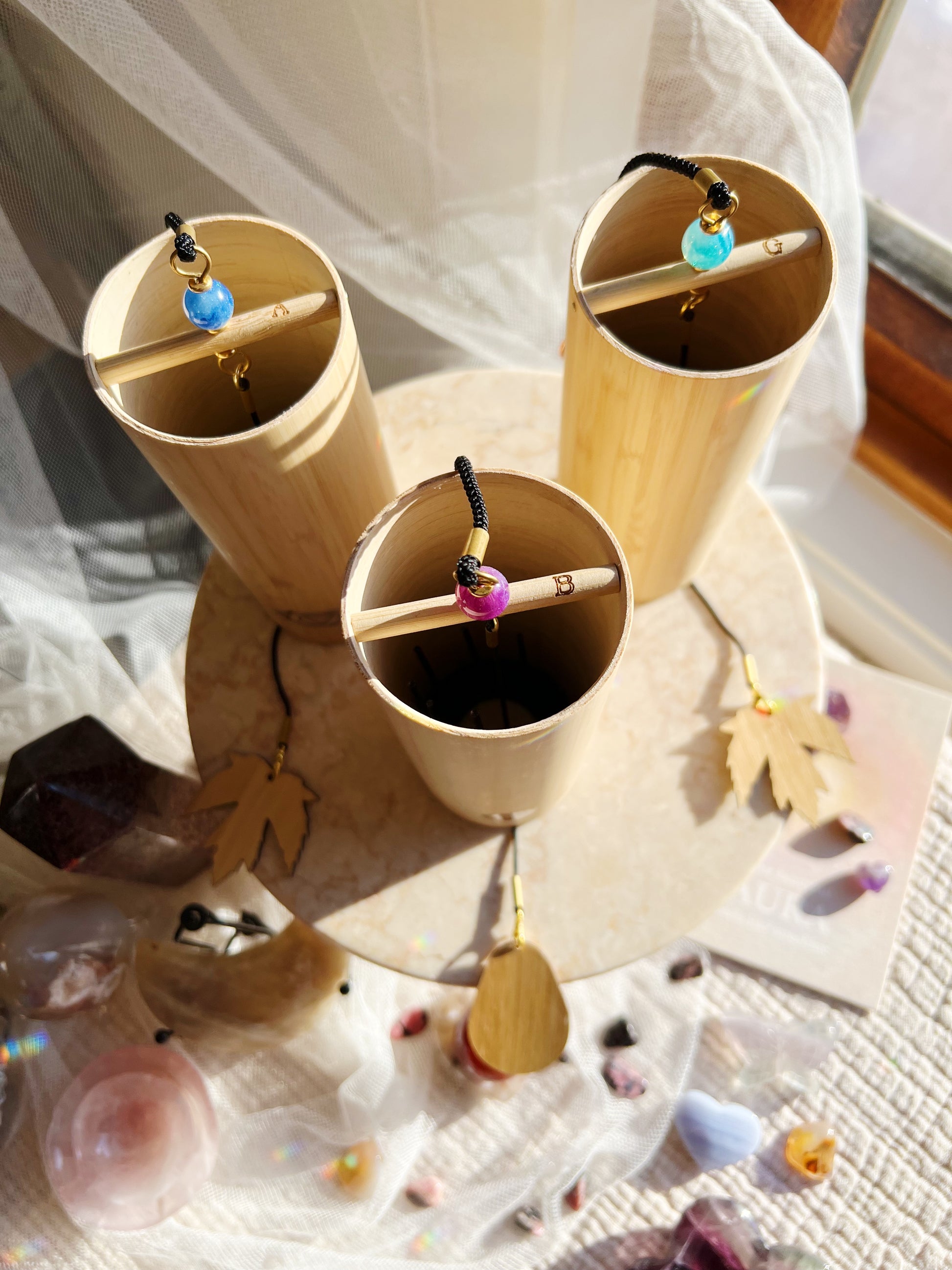Hvert vindspill produserer milde, resonerende toner som fremmer balanse og harmoni. Perfekt for meditasjon, lydterapi eller som et vakkert dekorativt element i hjemmet eller hagen.