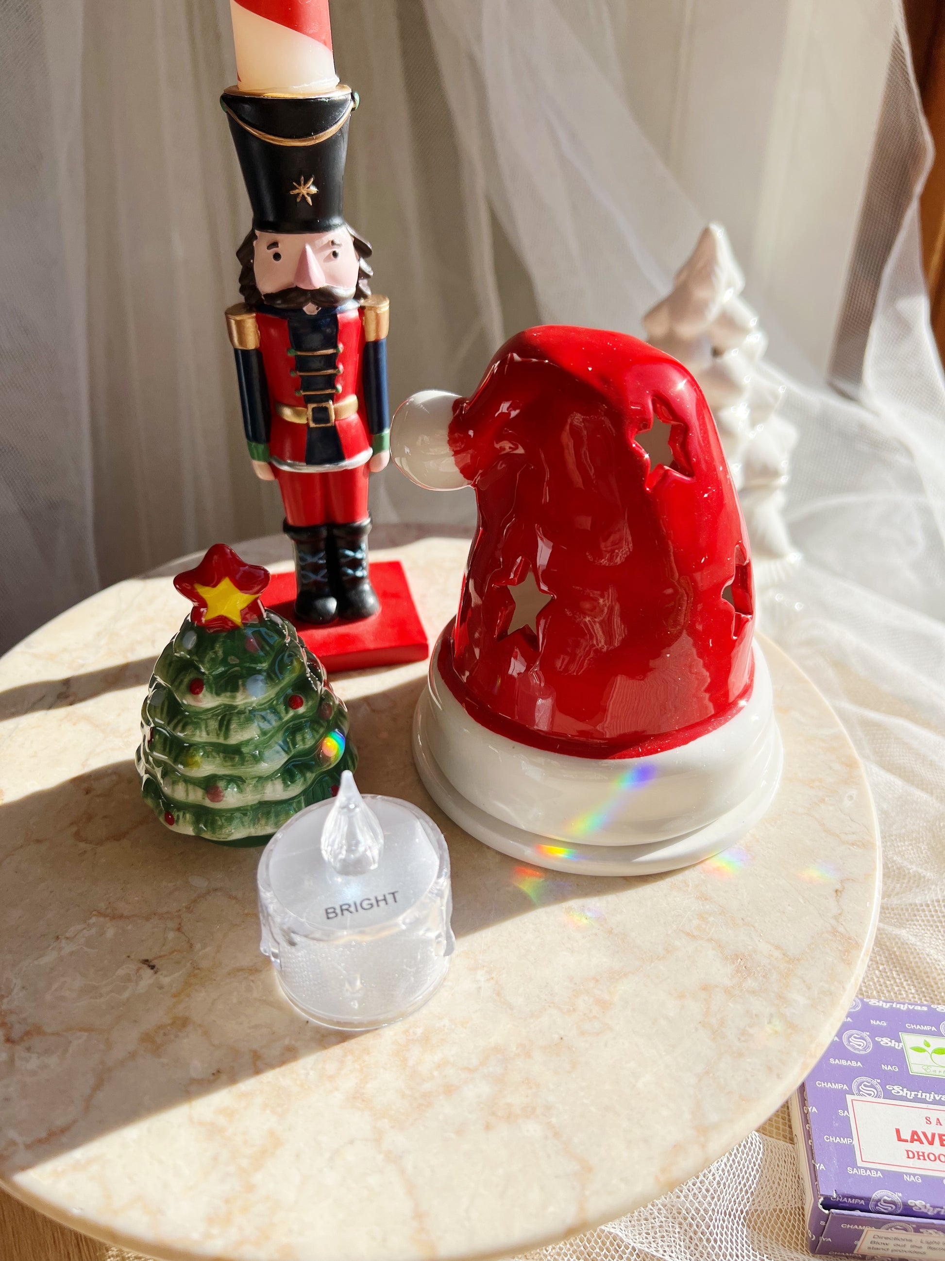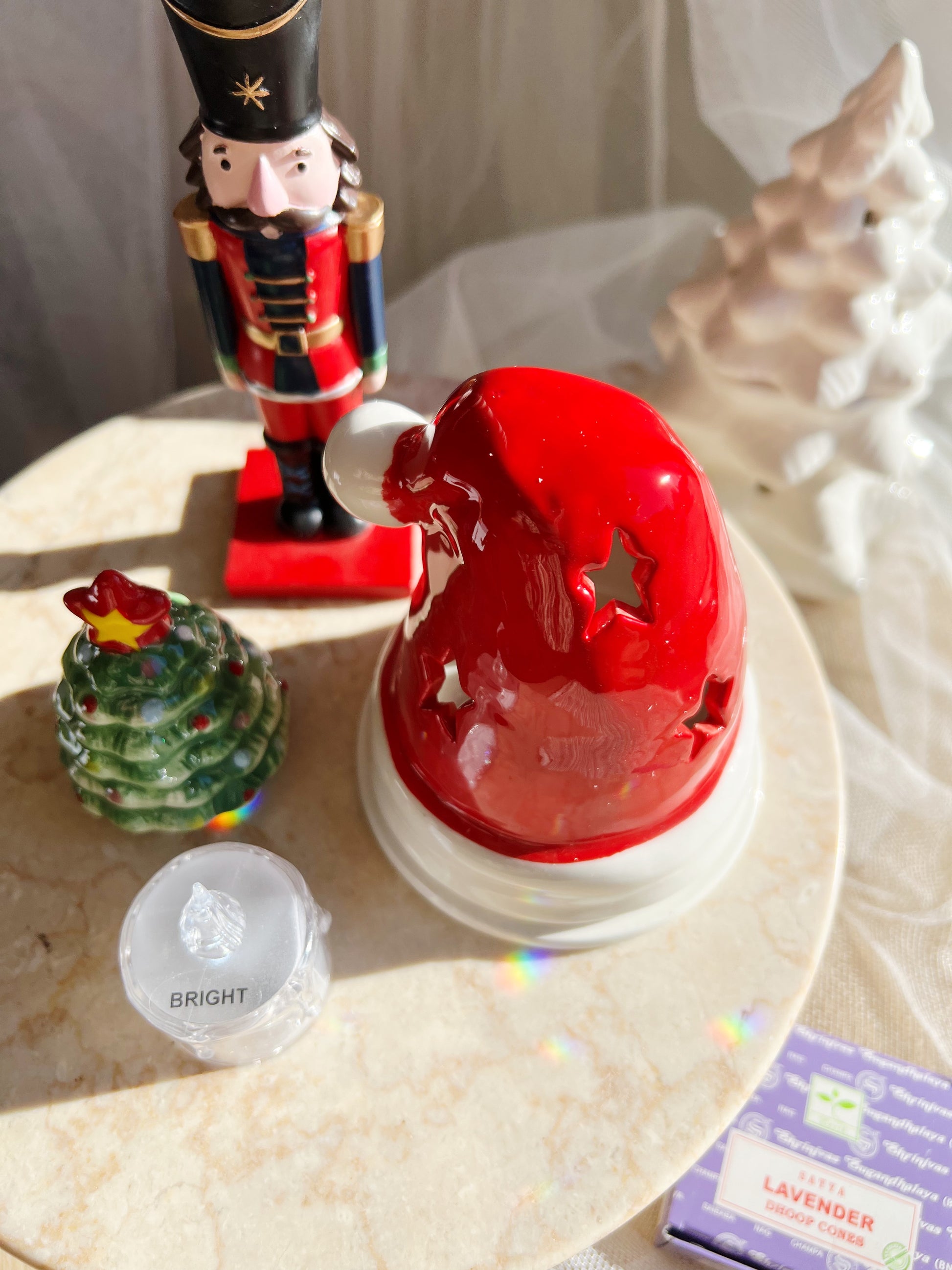 Denne sjarmerende juledekorasjonen formet som en klassisk nisselue fungerer både som telysholder og røkelsesbrenner. Utskårne stjerner skaper et varmt og stemningsfullt lysspill, mens duften fra røkelsen slynger seg ut og fyller rommet med julemagien vi alle elsker.
