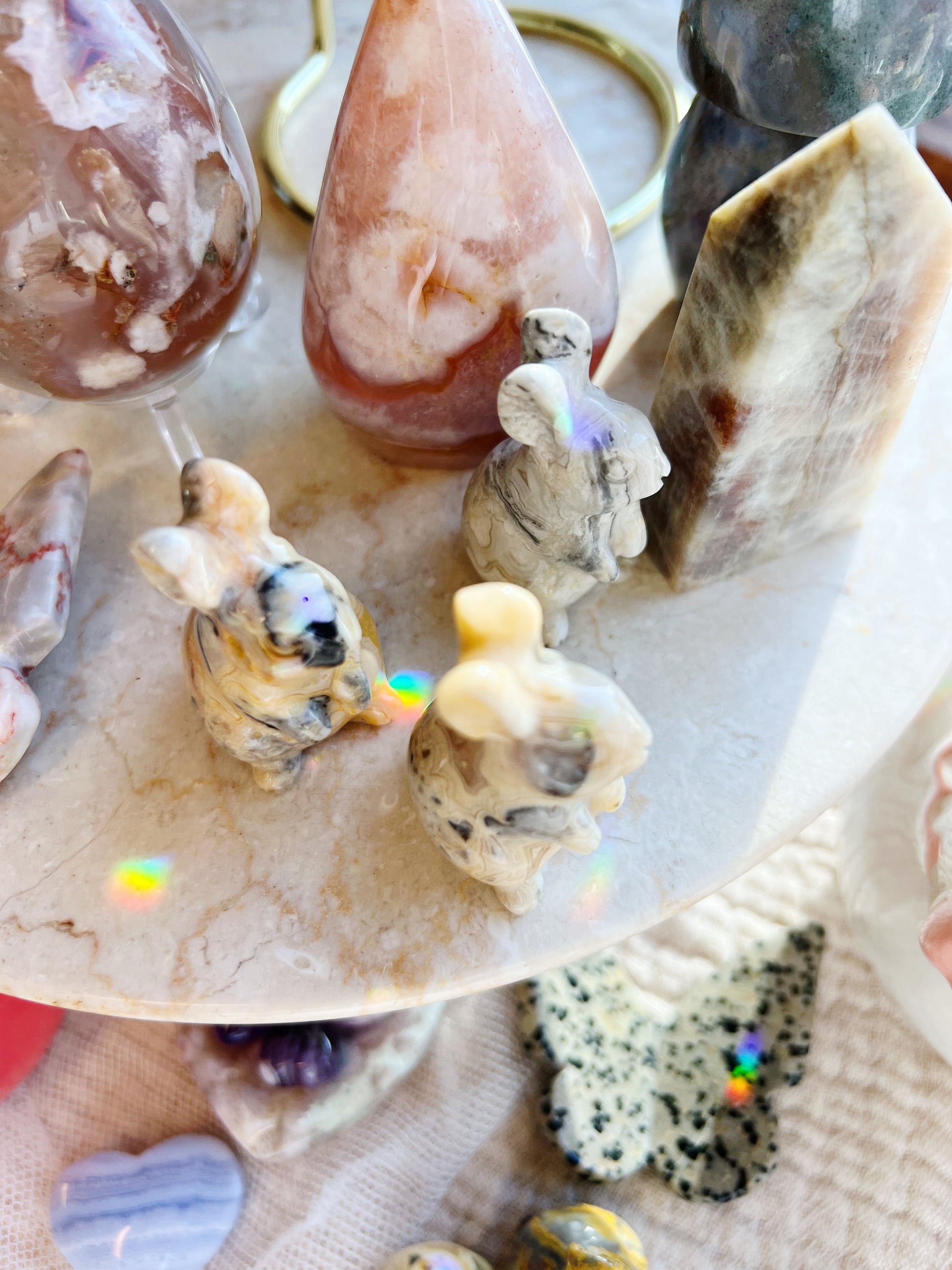 Alle krystaller er unike, så farger, former og mønstre kan variere. Vi velger alltid krystaller intuitivt, så du kan være trygg på at vi plukker den perfekte kaninen for deg 💛