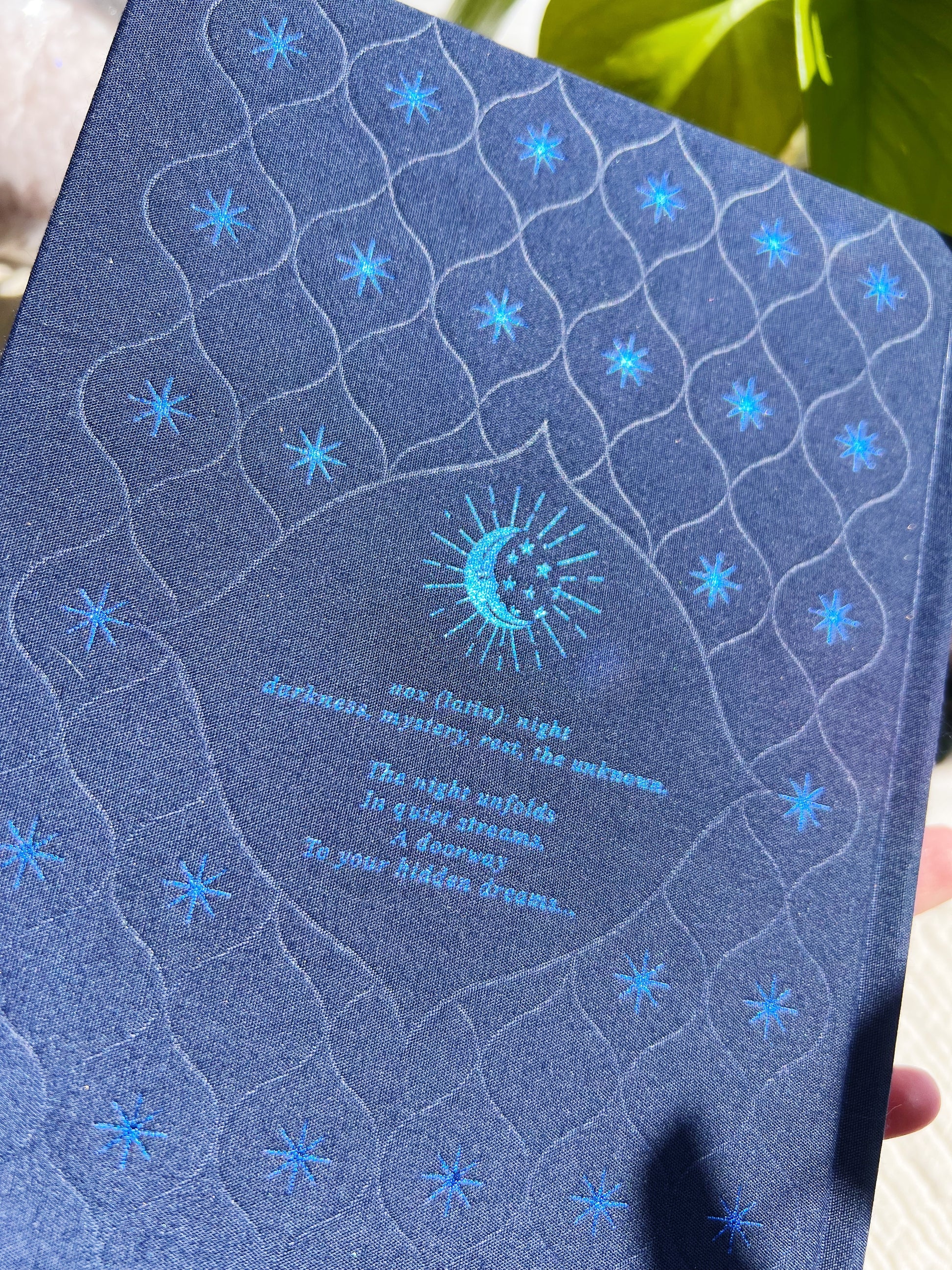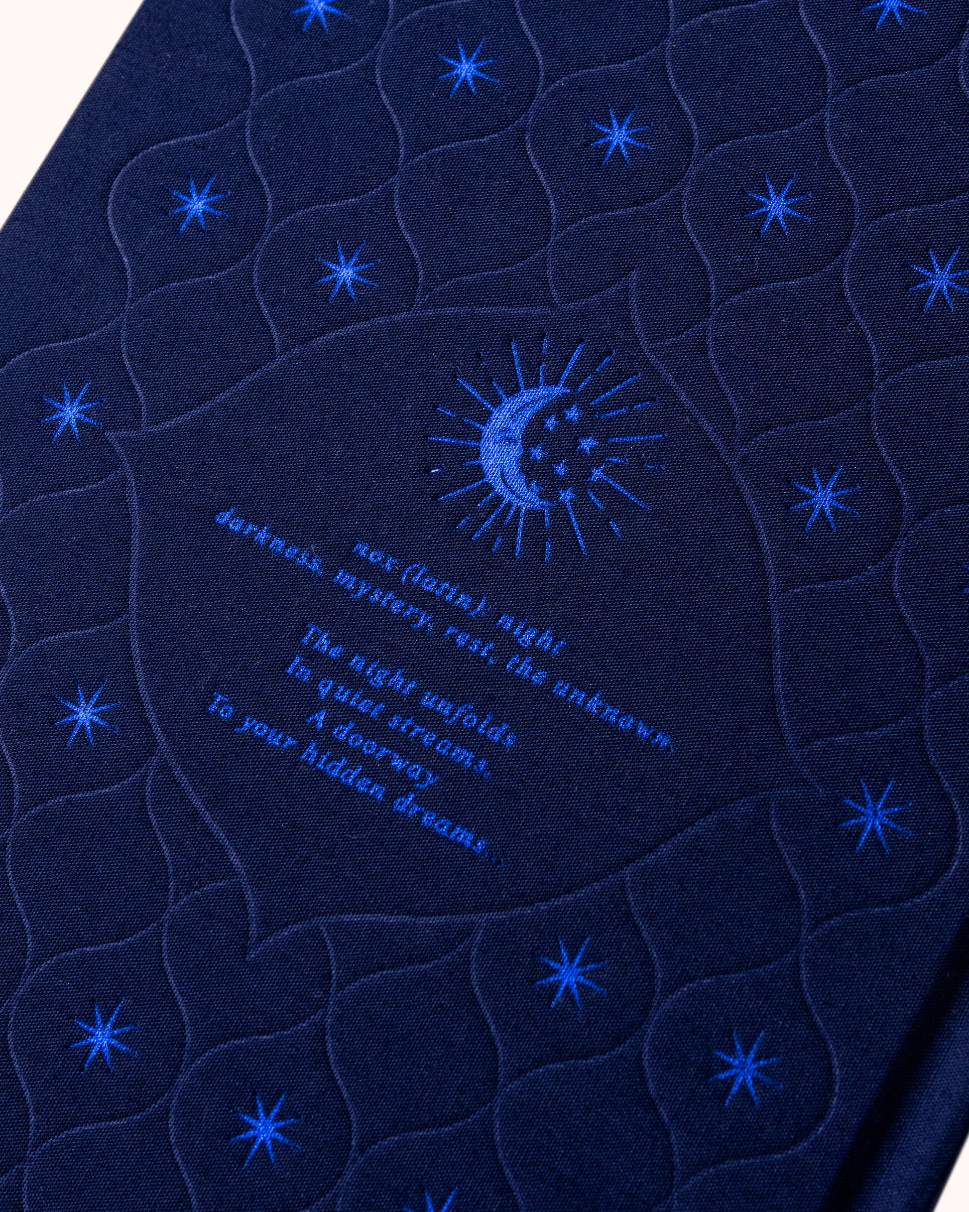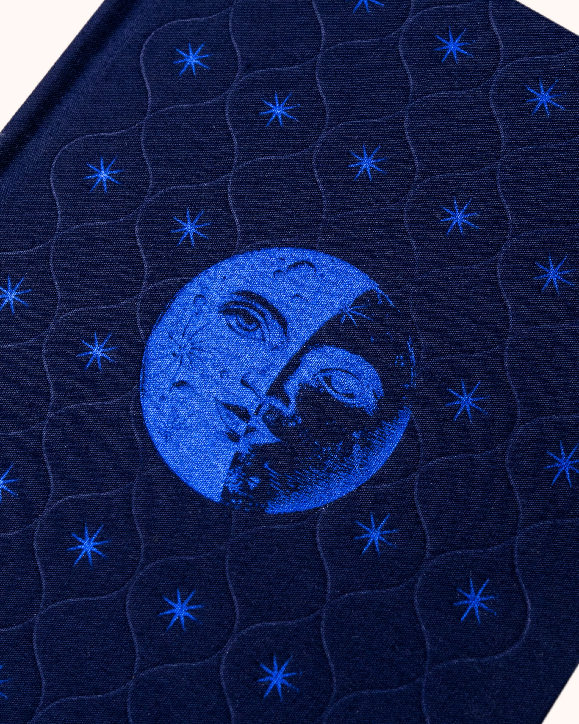 - Omslag: Myk bomullsklut med magisk blåfoliert illustrasjon