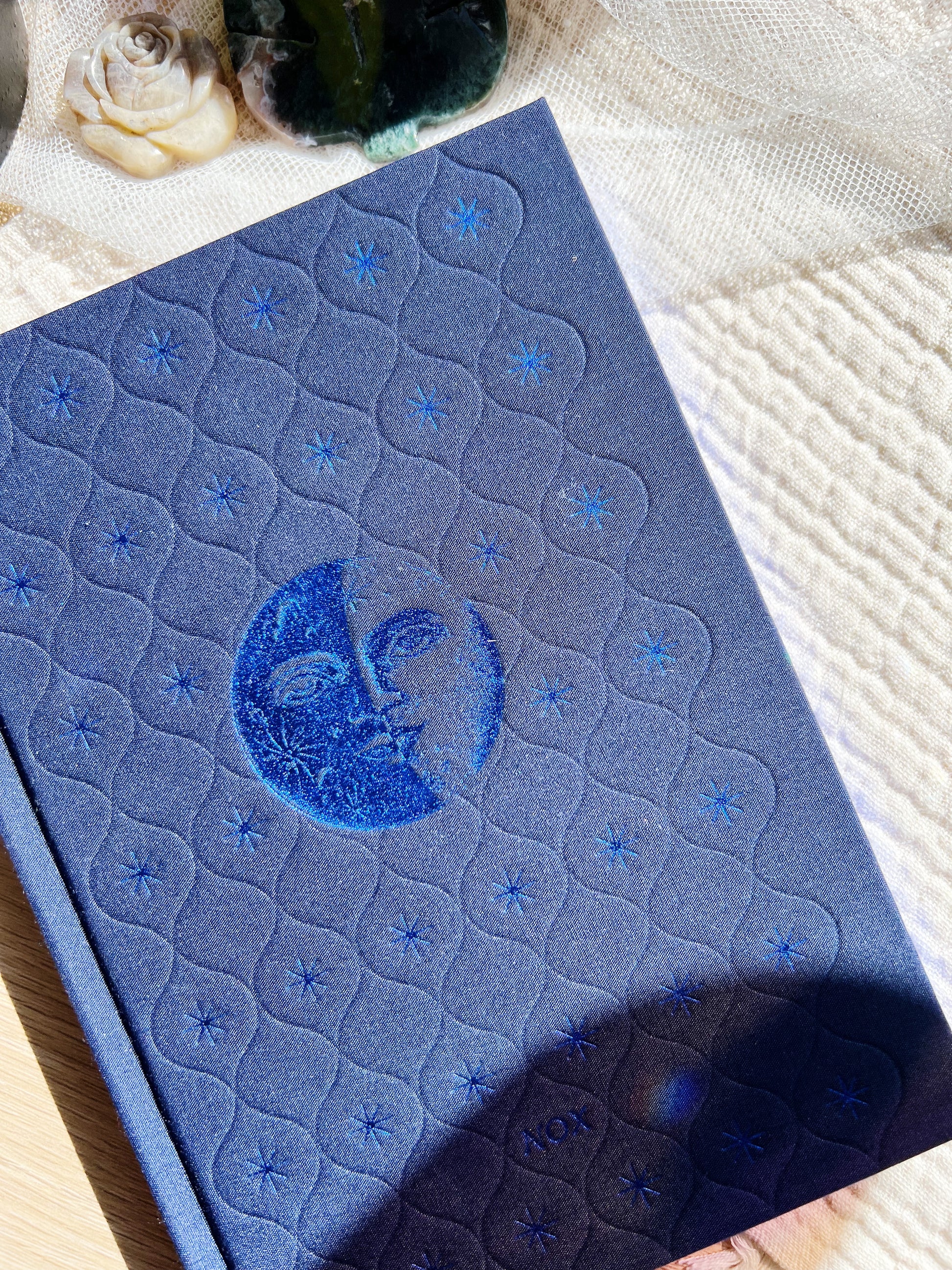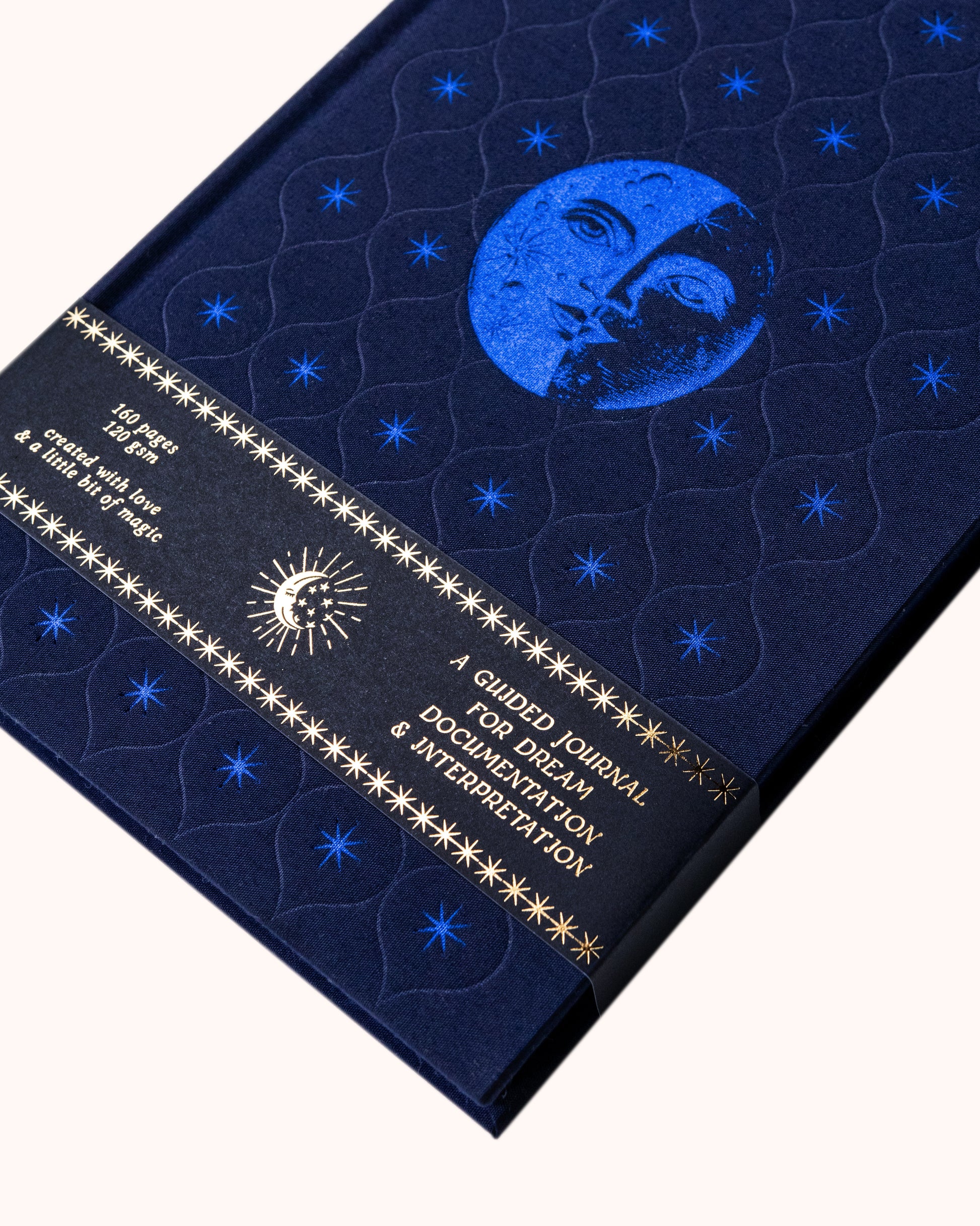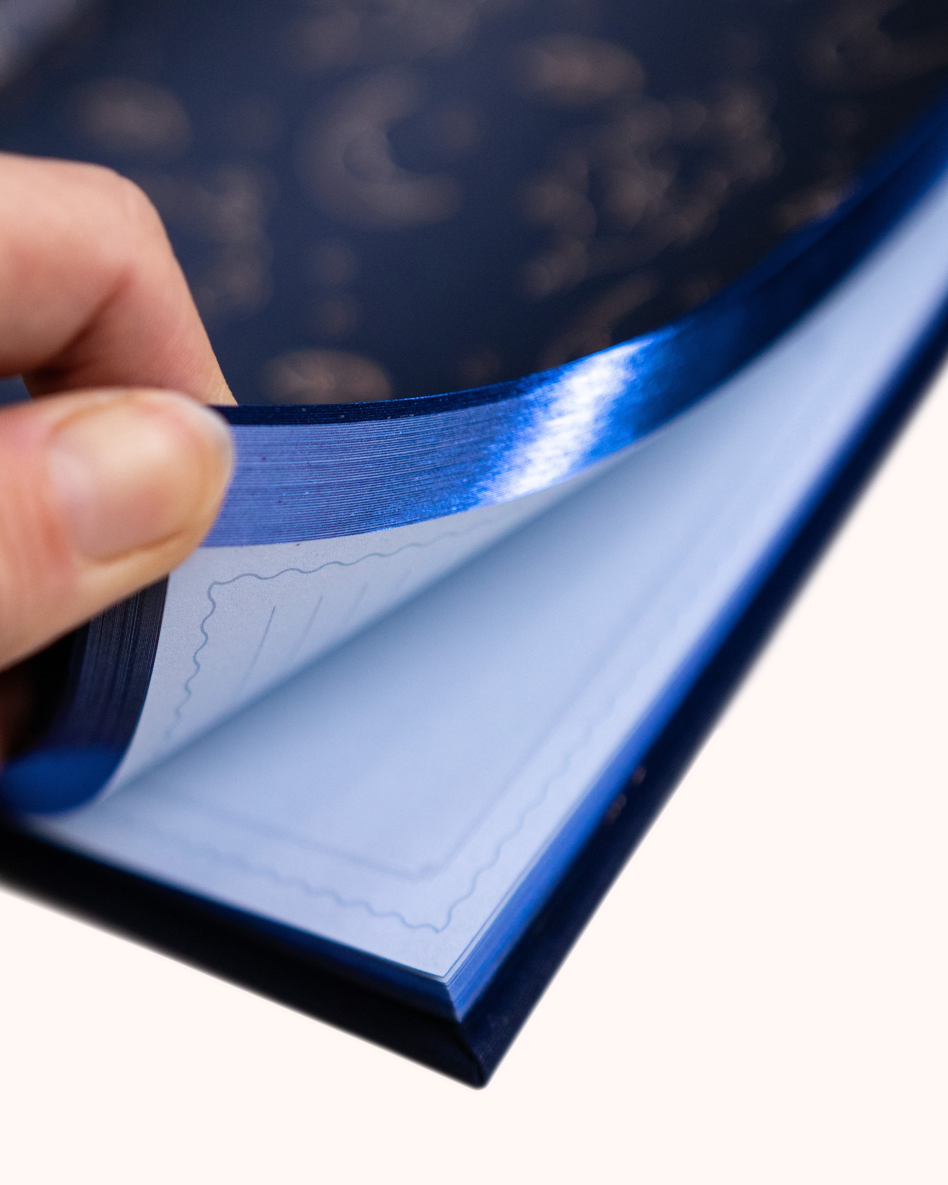Sider: 160 sider, 120 gsm – i lys blå nyanse med skimrende blå kant
