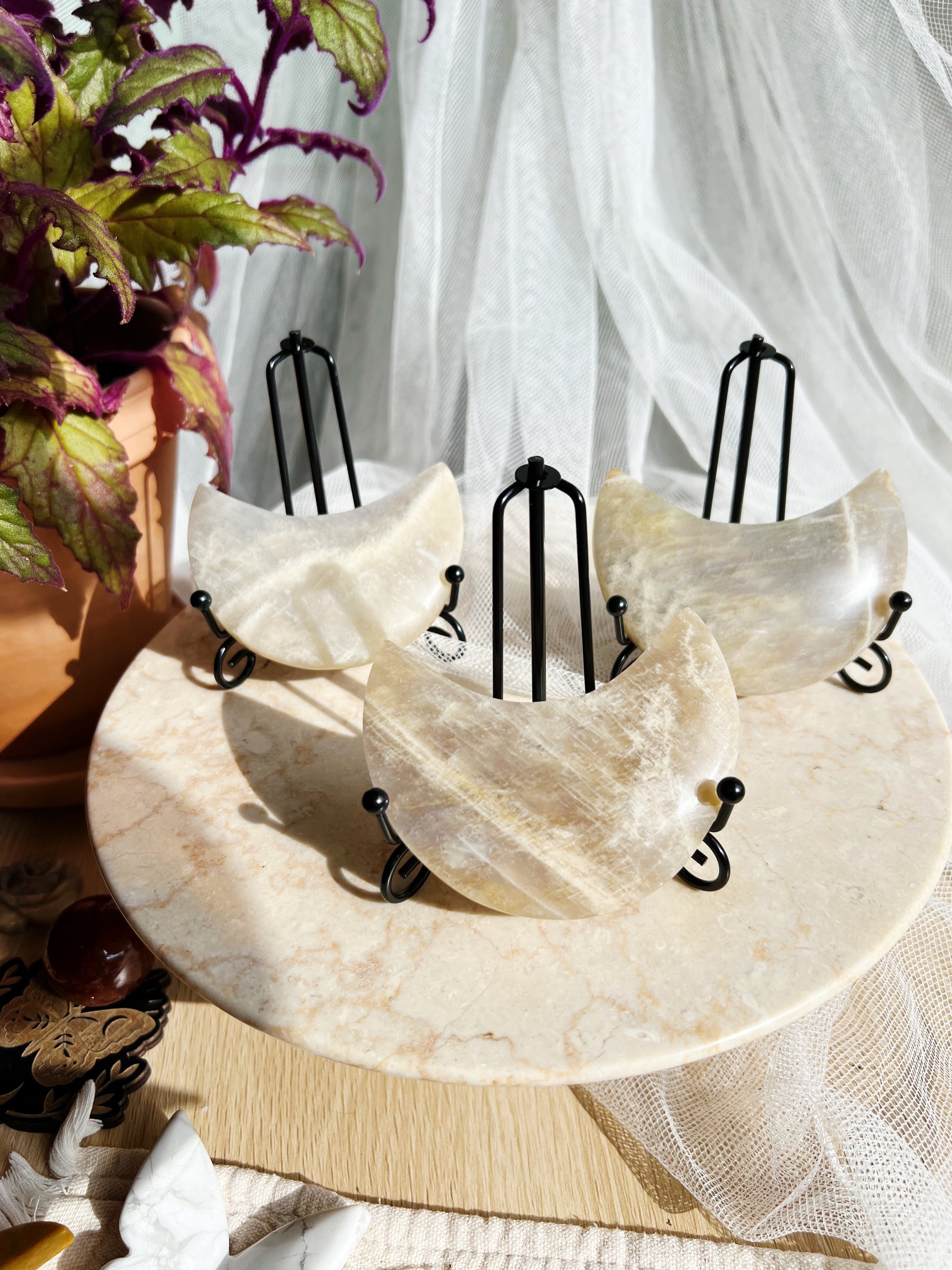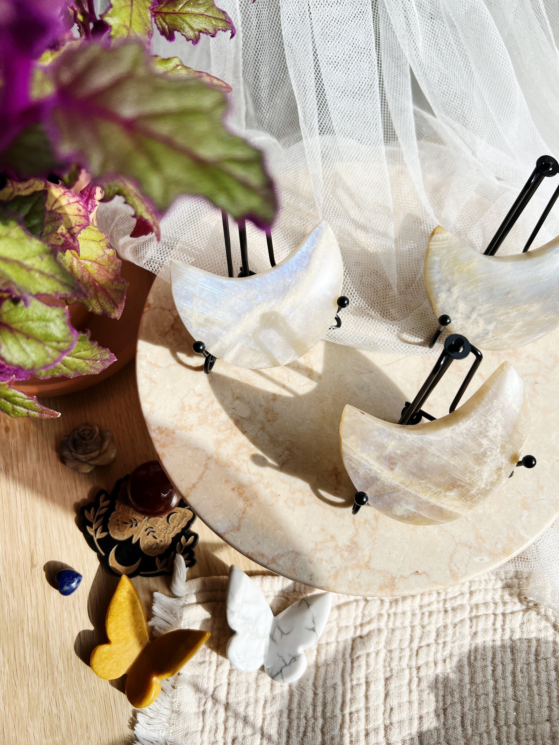 Merk: Hver måne er unik i farge og glans. Noen har blått skimmer, andre har mer perlemorsaktig glød – alle velges intuitivt og med kjærlighet 💙🌙