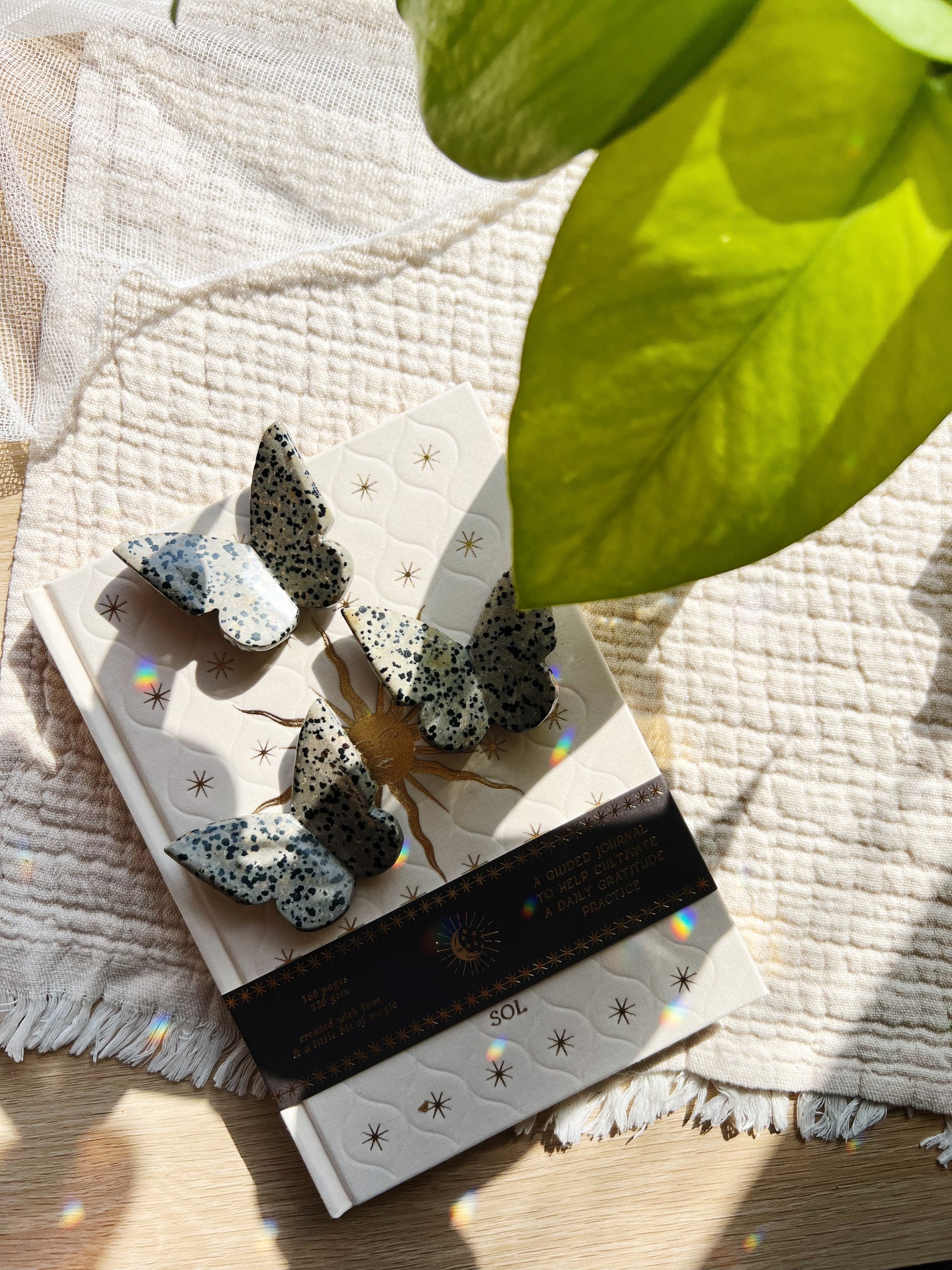 🦋 Sommerfuglen er symbolet på transformasjon og frihet – og i kombinasjon med dalmatinersteinens lekne energi, minner den deg på at det er lov å både vokse og leke, samtidig.