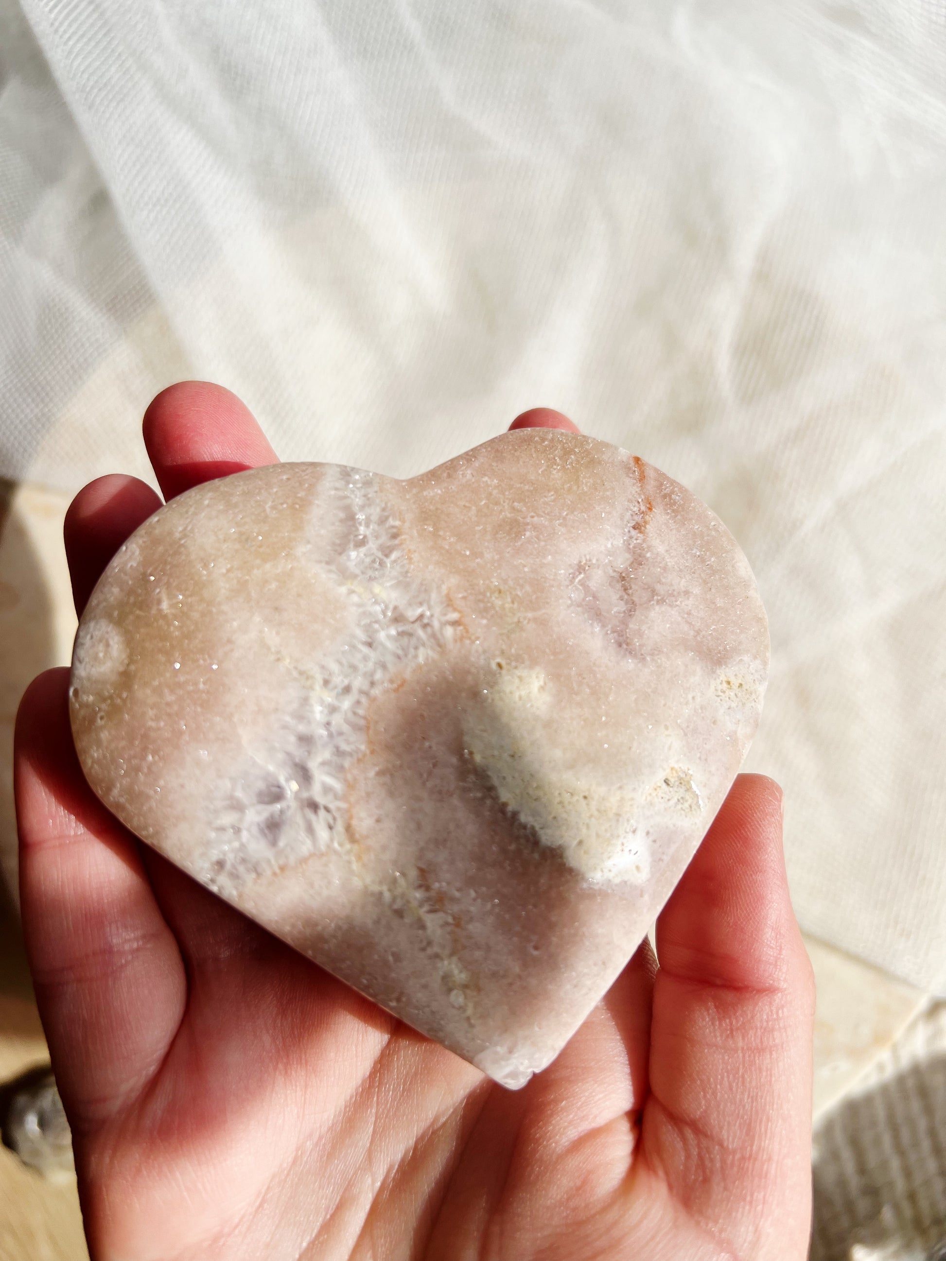 Hjerteformen representerer kjærlighet, healing og medfølelse, mens druzy-overflaten – med sine små naturlige krystallpunkter – forsterker energien og gir en glitrende, nesten eterisk følelse.
