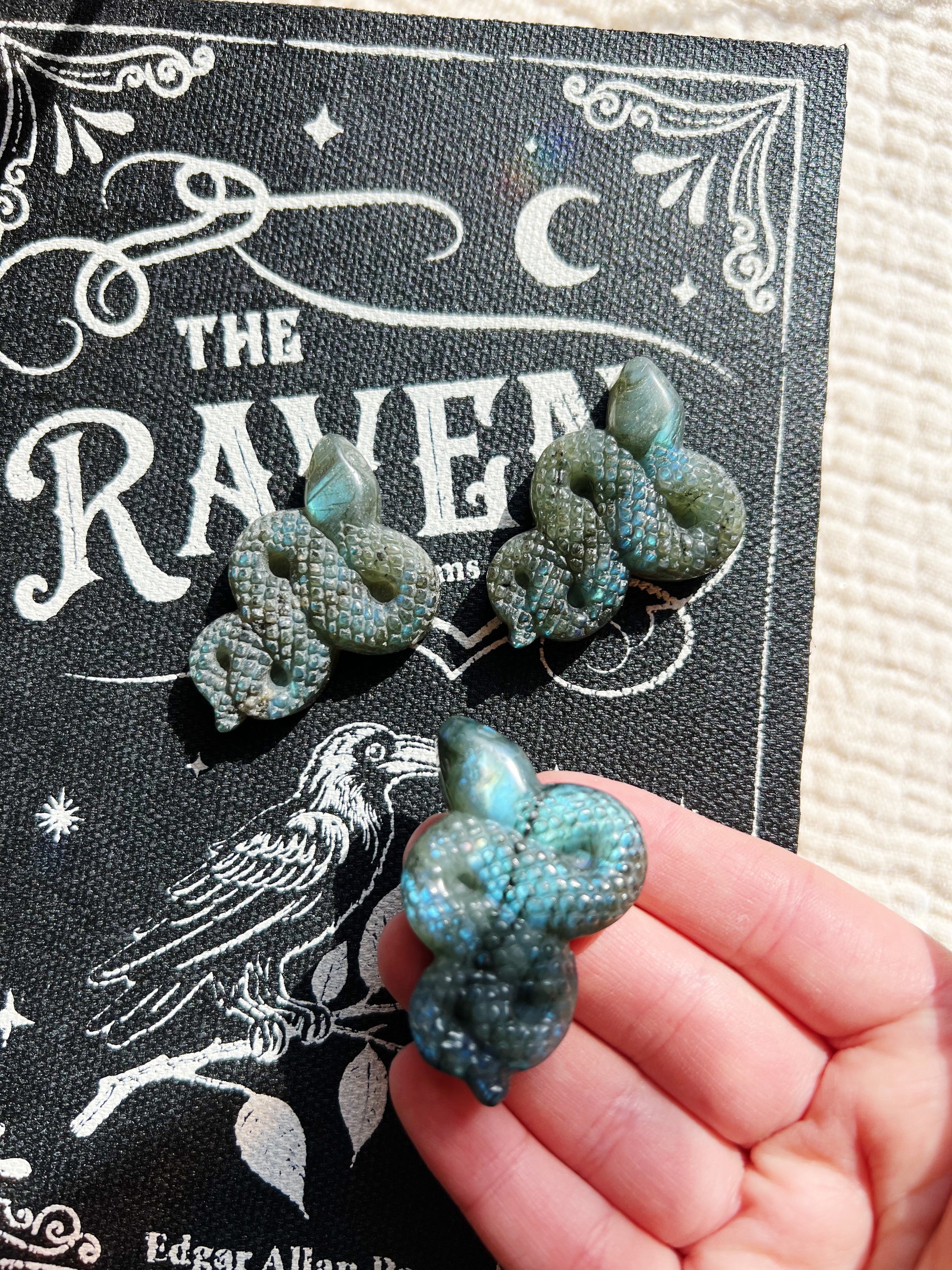 Denne vakre, hÄndskÄrne slangen i glansfull labradoritt bÊrer et hypnotisk blÄtt skimmer og sterk symbolikk. I mange kulturer representerer slangen fornyelse, dyp visdom og evnen til Ä gi slipp pÄ det gamle for Ä vokse videre. NÄr den kombineres med labradorittens spirituelle kraft, fÄr du en mektig alliert for beskyttelse, selvutvikling og indre styrke.