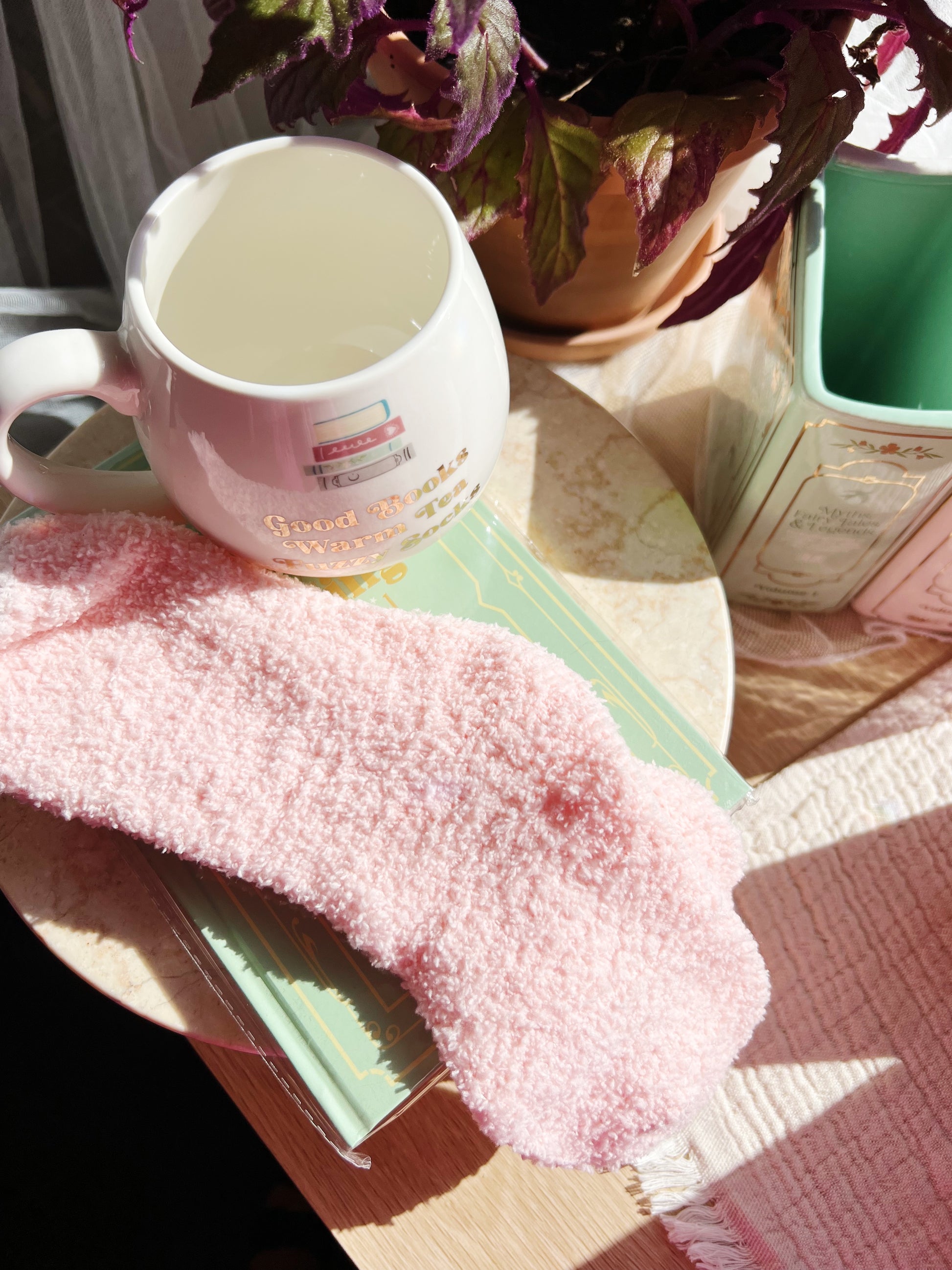 GjĂžr deg klar for ekte lesehygge! Dette koselige gavesettet inneholder et keramikkrus med teksten âGood Books, Fuzzy Socks, Warm Teaâ og et par myke sokker â perfekt for lesestunder under teppet.