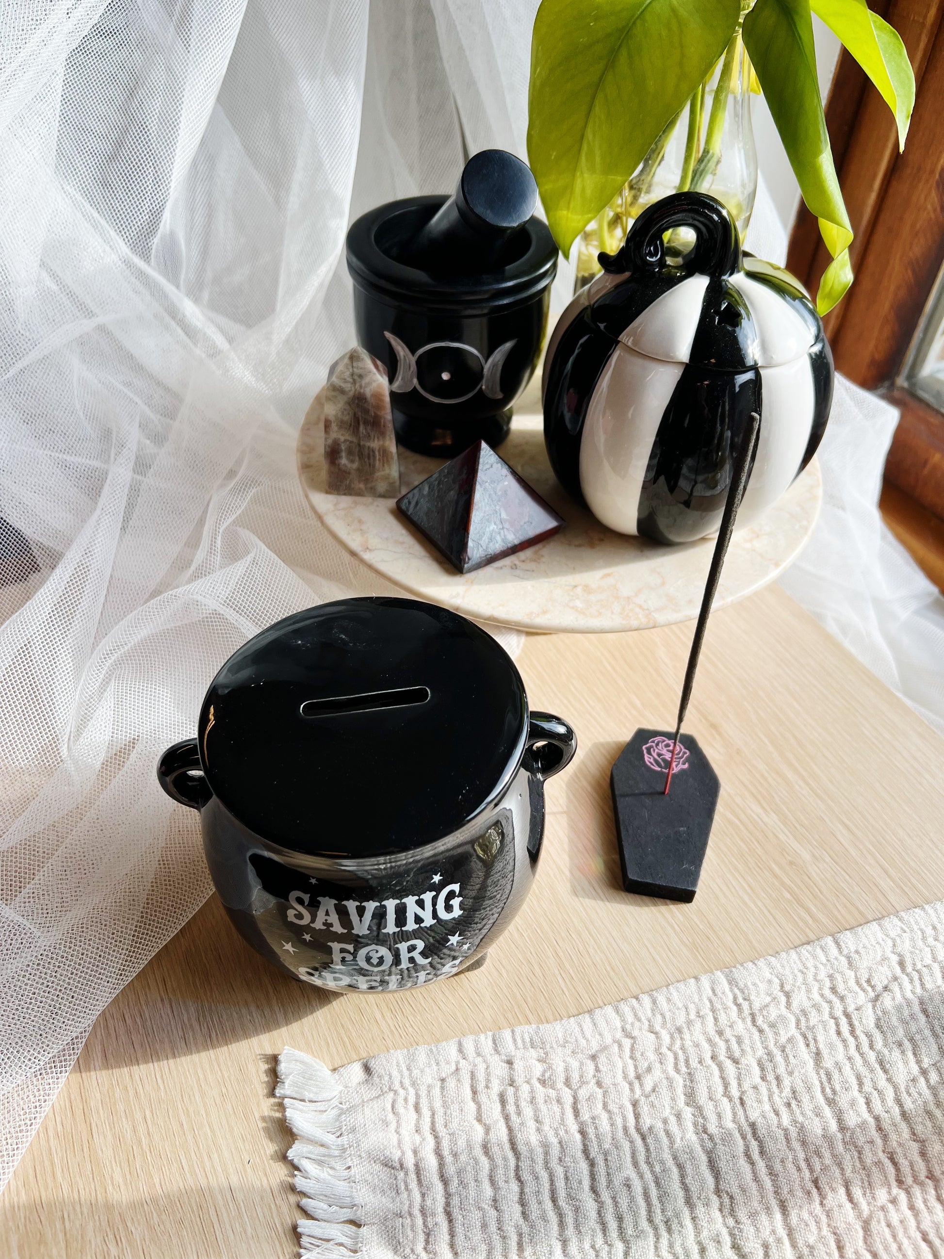 En stilig og praktisk sparebĂžsse som passer perfekt til Halloween, hekser og alle som elsker det gotiske.