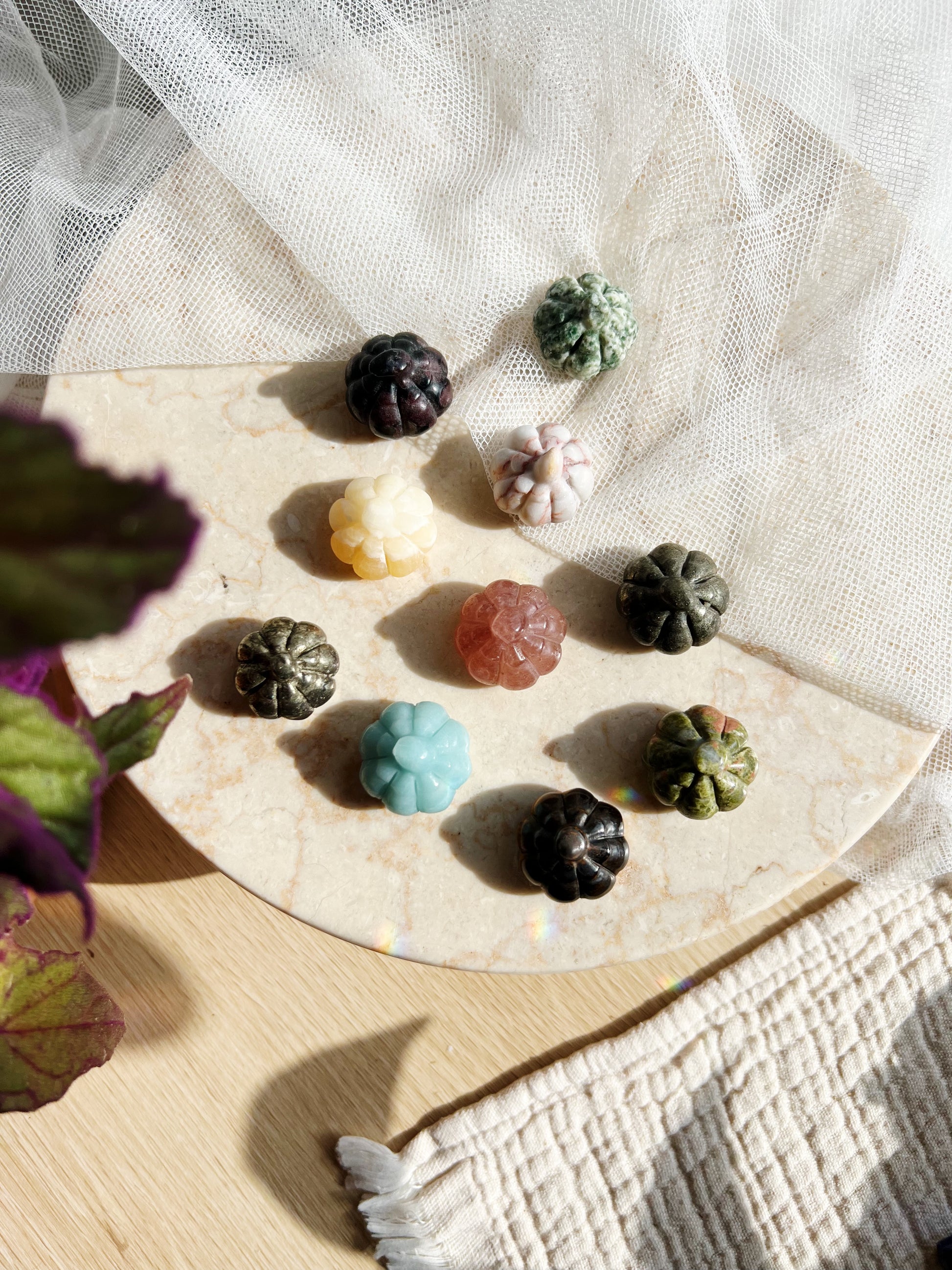 Enten du fÄr den beskyttende kraften til pyritt, eller den beroligende energien fra amazonitt, bringer disse gresskarene varme, magi og mening til ethvert rom.