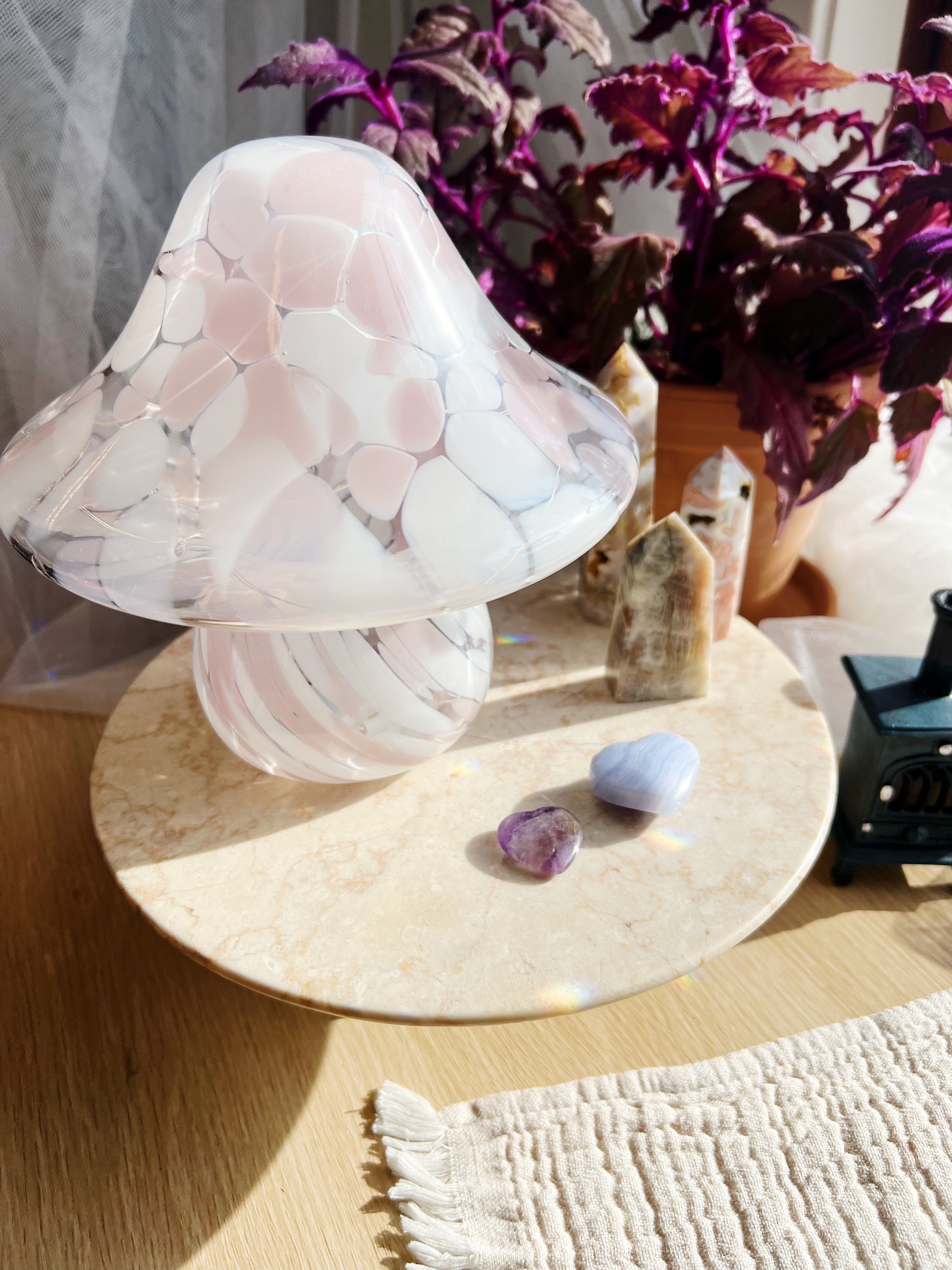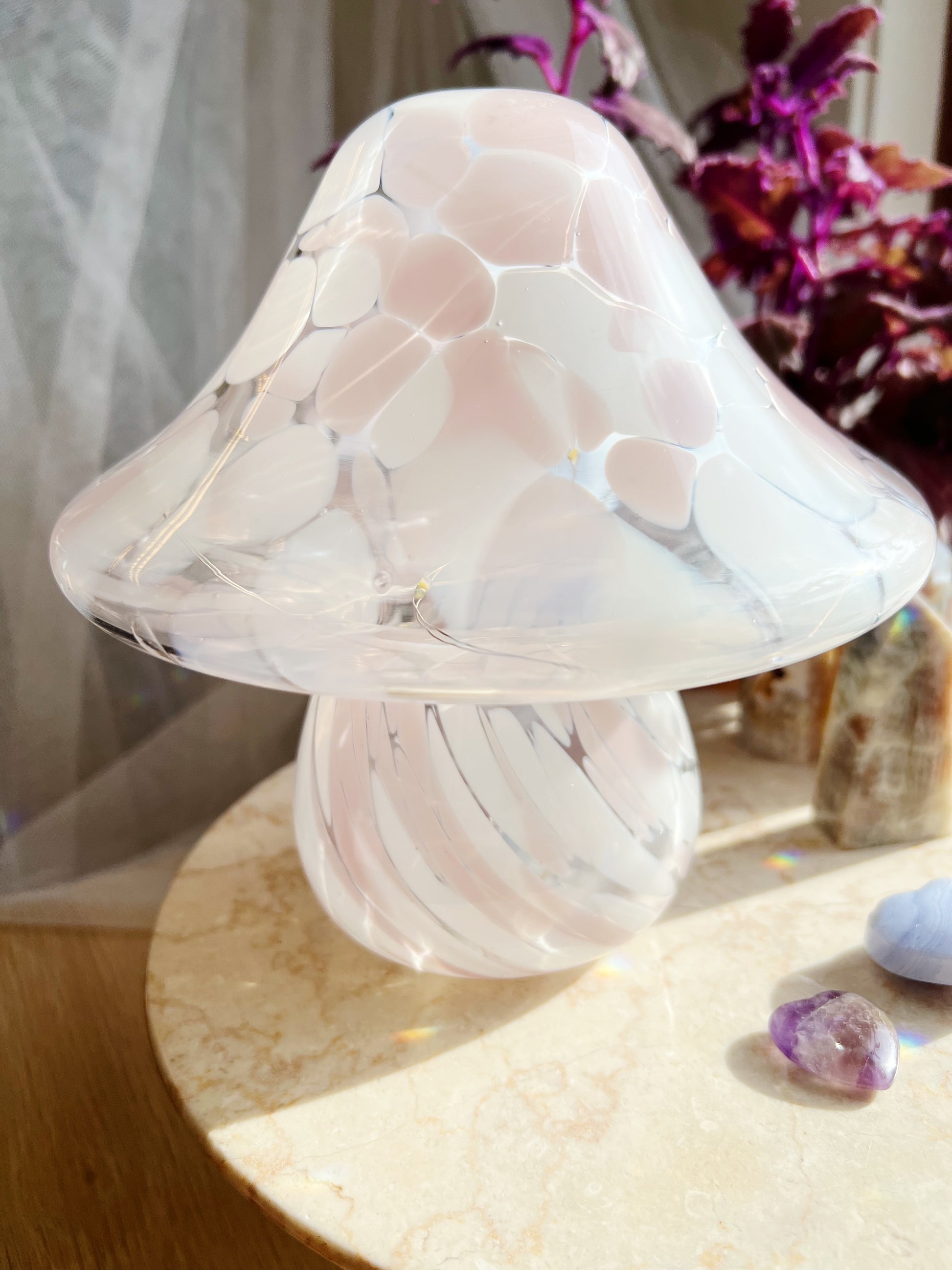 🍄 Håndblåst LED-sopplampe i glass