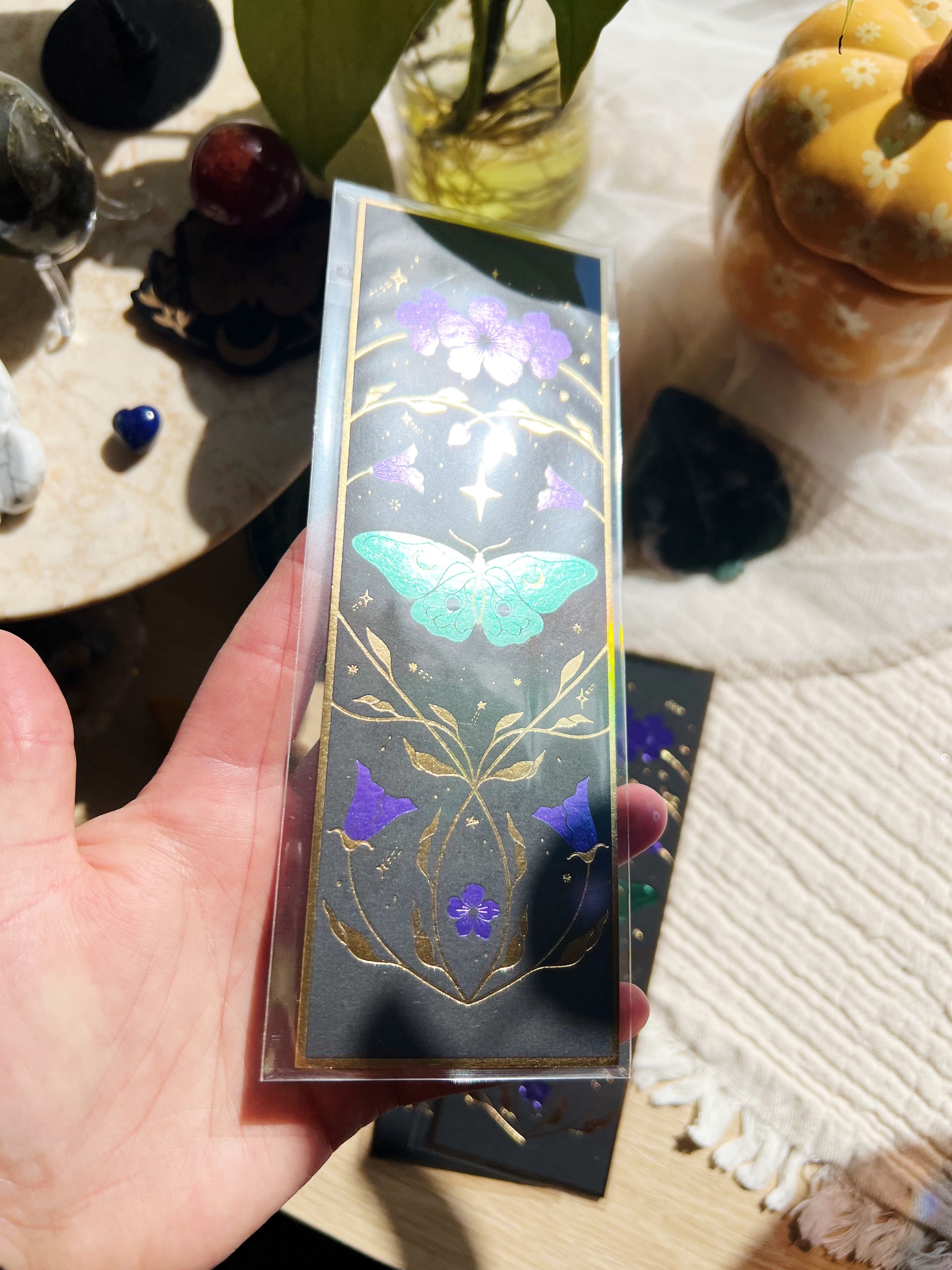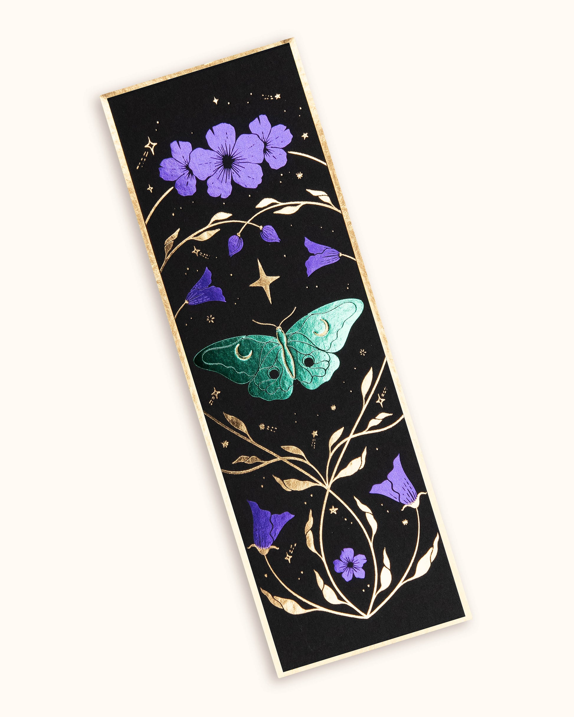 Bokmerket er dekorert med elegante detaljer i gull, smaragdgrønn og syrinfolie og har et inspirerende sitat på baksiden ✨