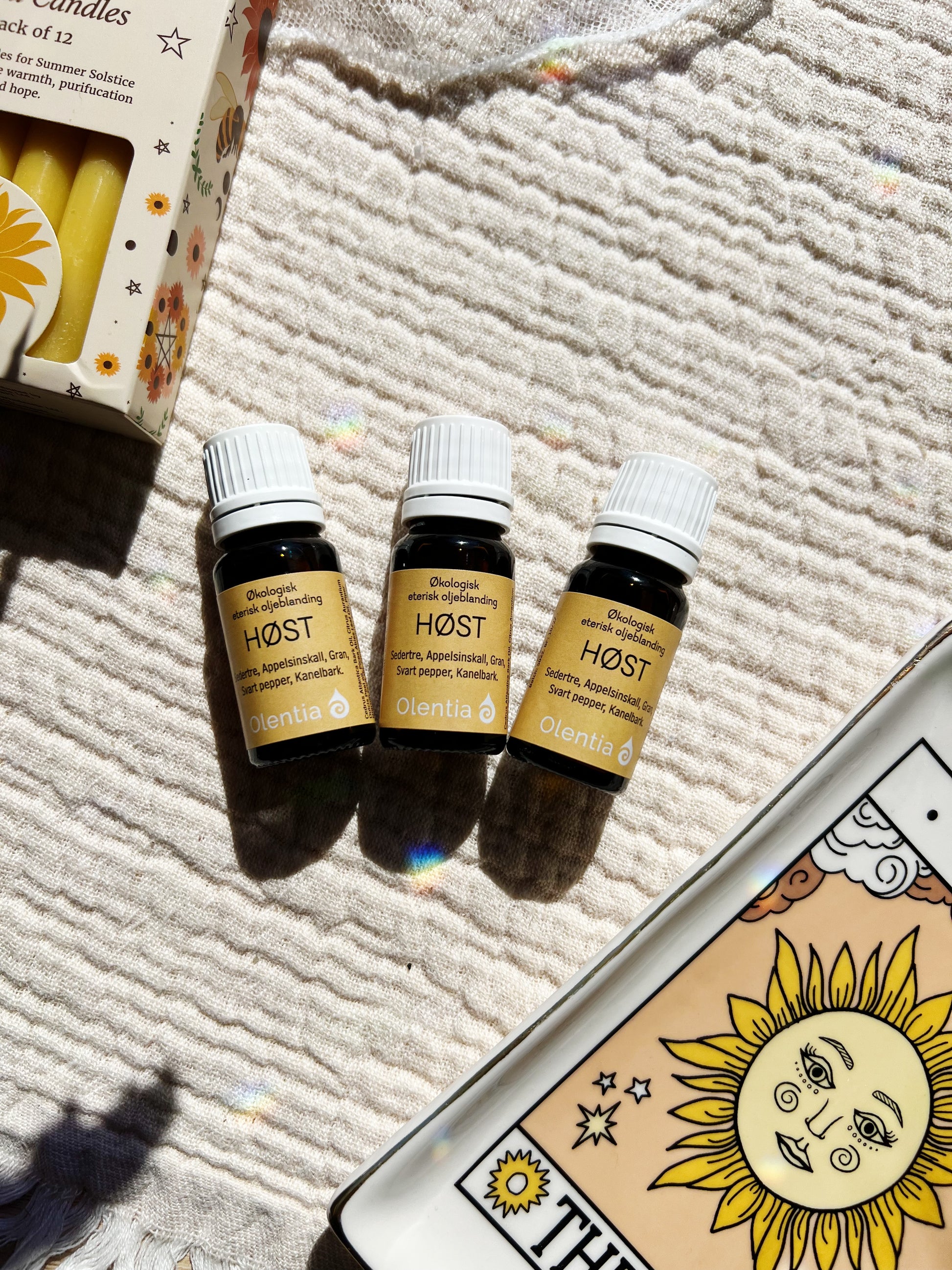 La høsten komme med varme, ro og sanselighet. HØST er vår eksklusive eteriske oljeblanding – nøye sammensatt for å bringe deg nærmere naturens egen rytme. Den dufter av søt appelsin, dype trenoter og et snev av krydret pepper – som et bål i skumringen.