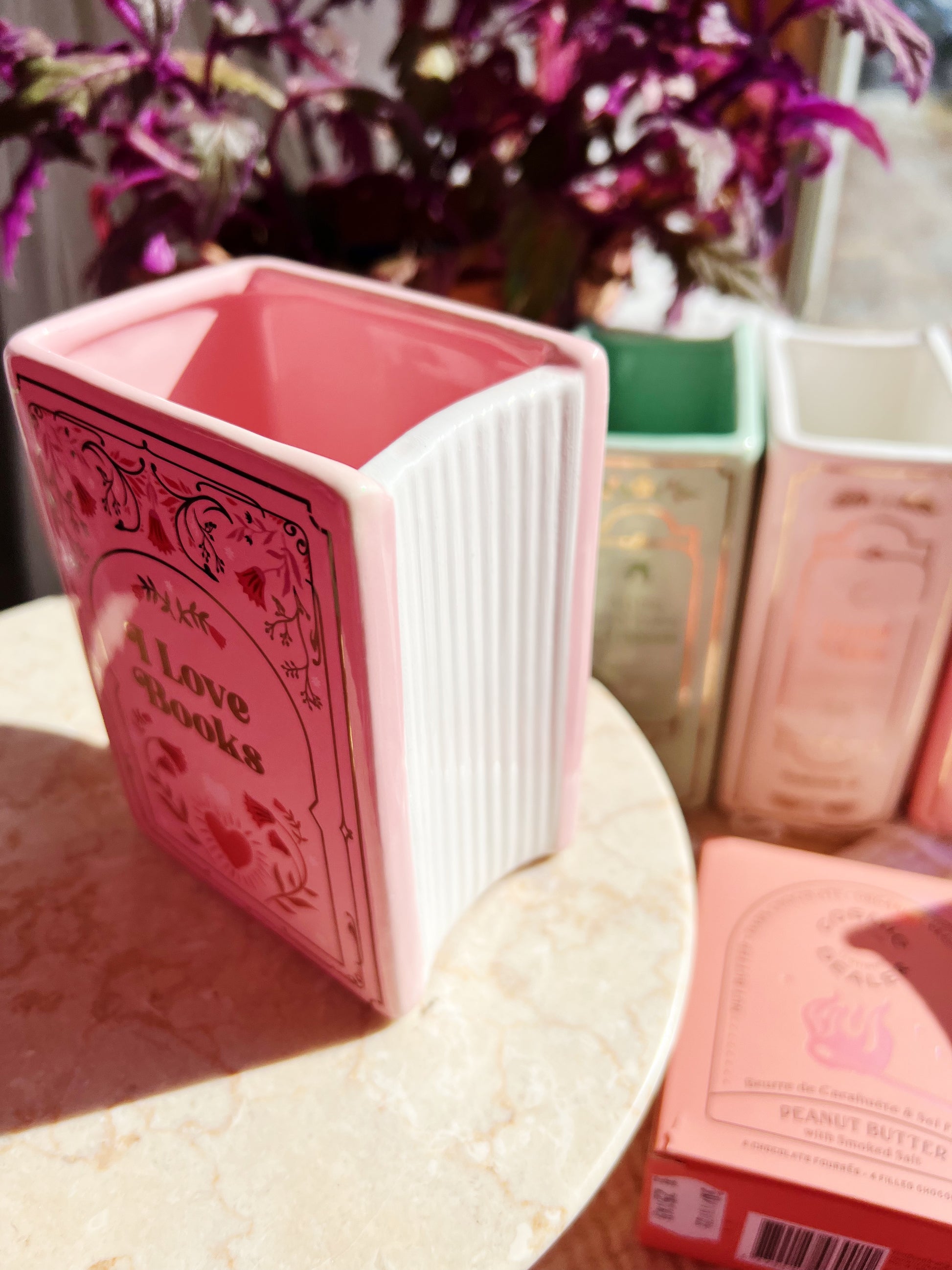 - đ Unik bokformet design i dus rosa keramikk