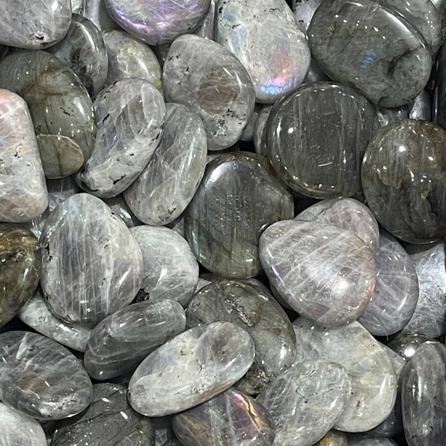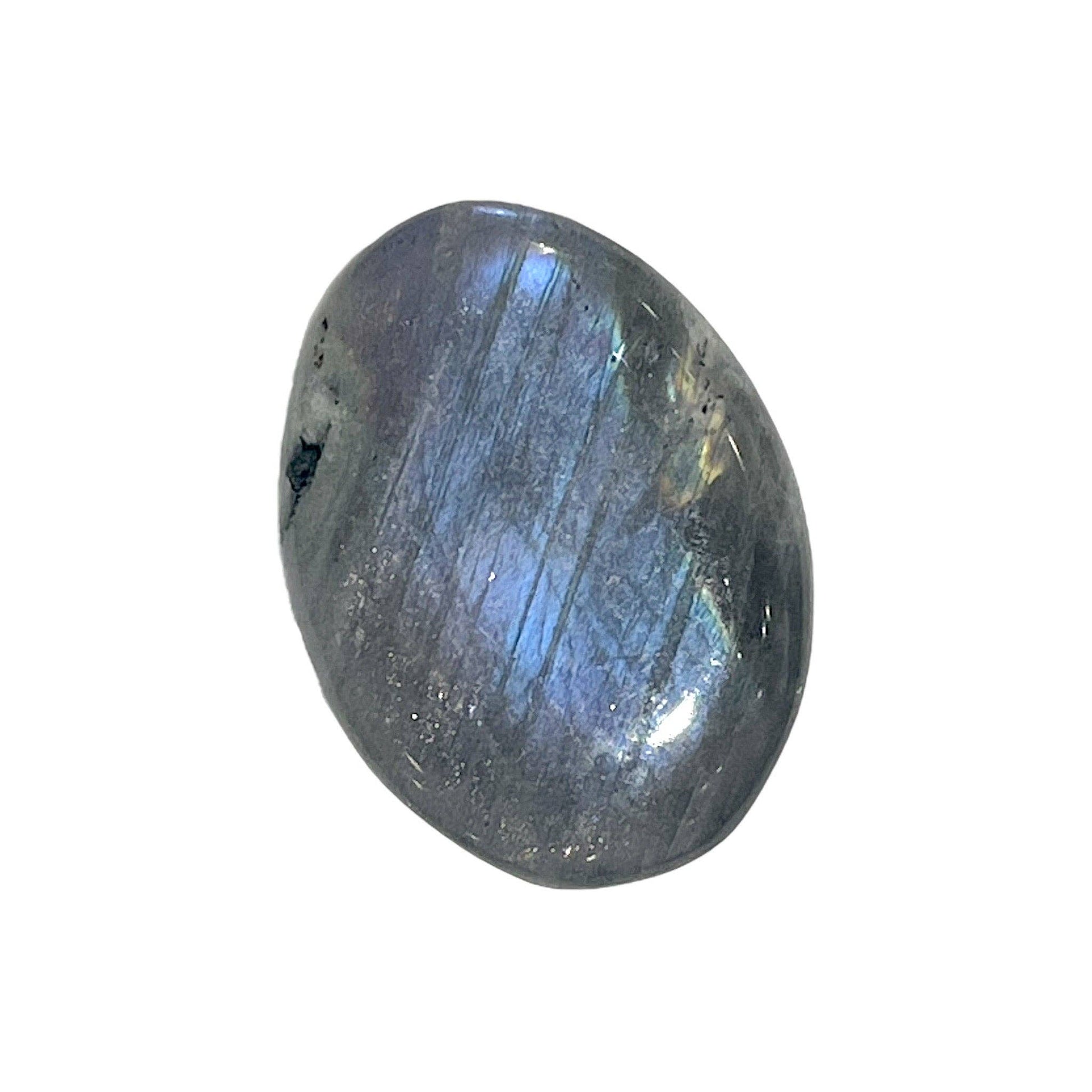 Labradoritt er en mystisk og kraftfull krystall, kjent for å vekke intuisjonen og styrke dine synske evner. Denne flate rullesteinen er perfekt for meditasjon, lommestein eller som en vakker dekorasjon. Dens magiske skjær av blå, grønn og gull gjør hver stein unik.