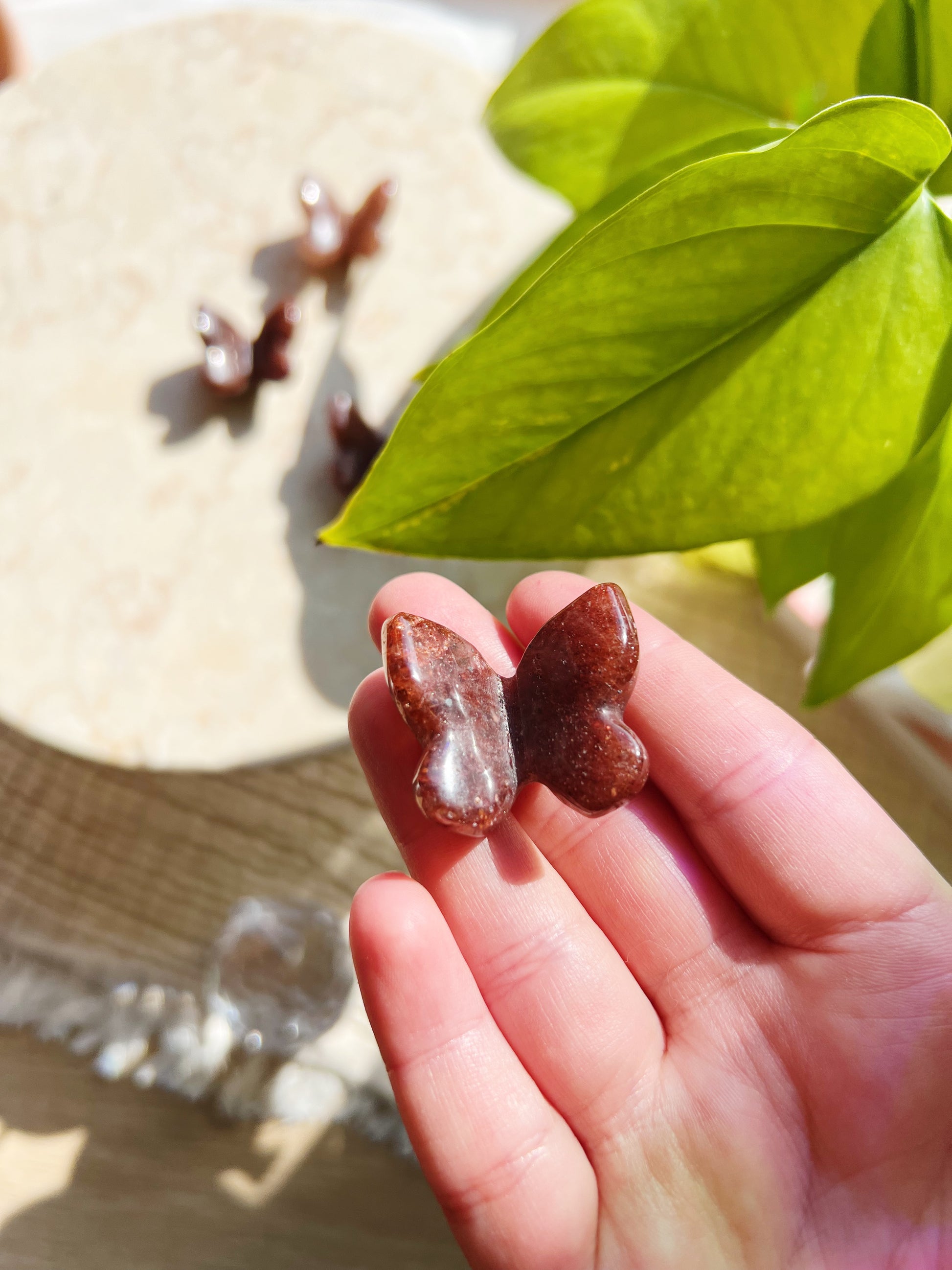 🦋 Mini Sommerfugl i Jordbærkvarts – 3 cm ✨
