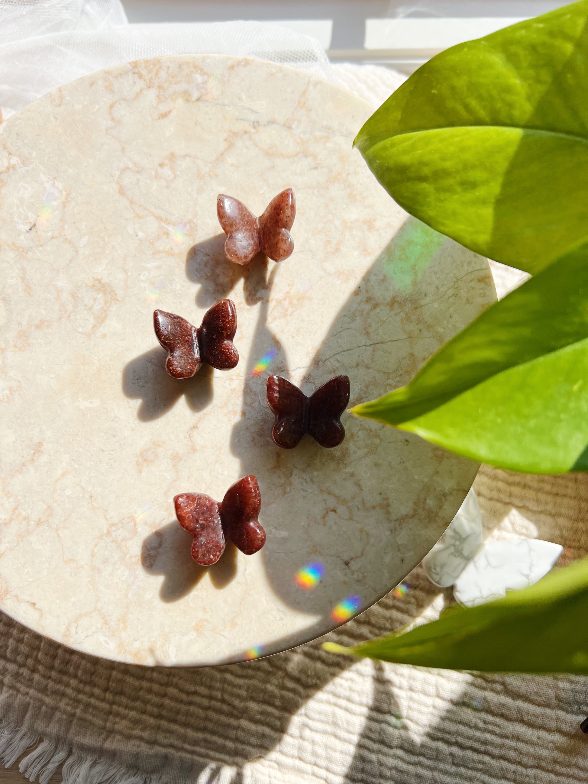 Mini Sommerfugl i Jordbærkvarts – 3 cm