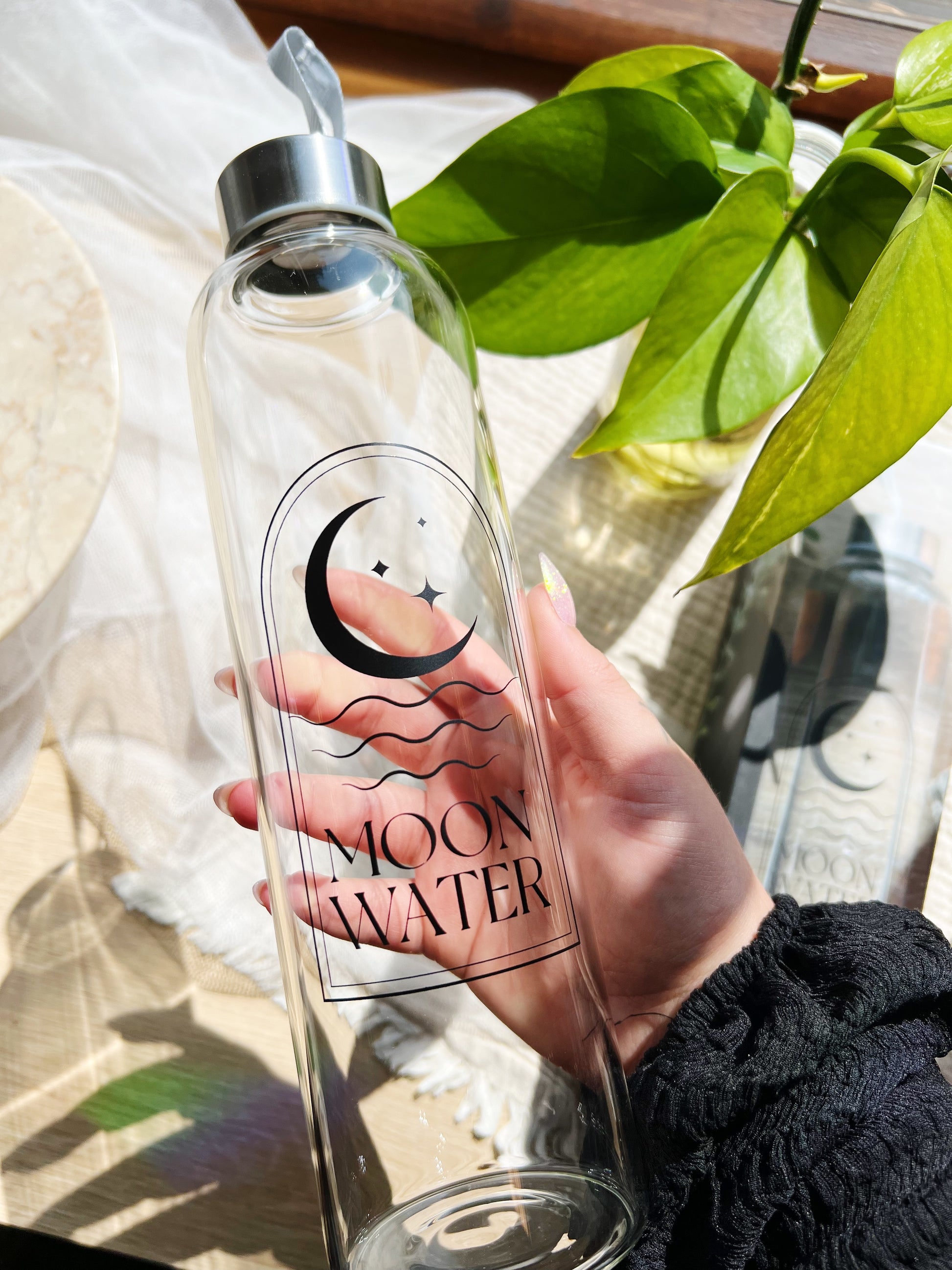 Månevannflaske i Glass – for energiladet vann og spirituelle ritualer