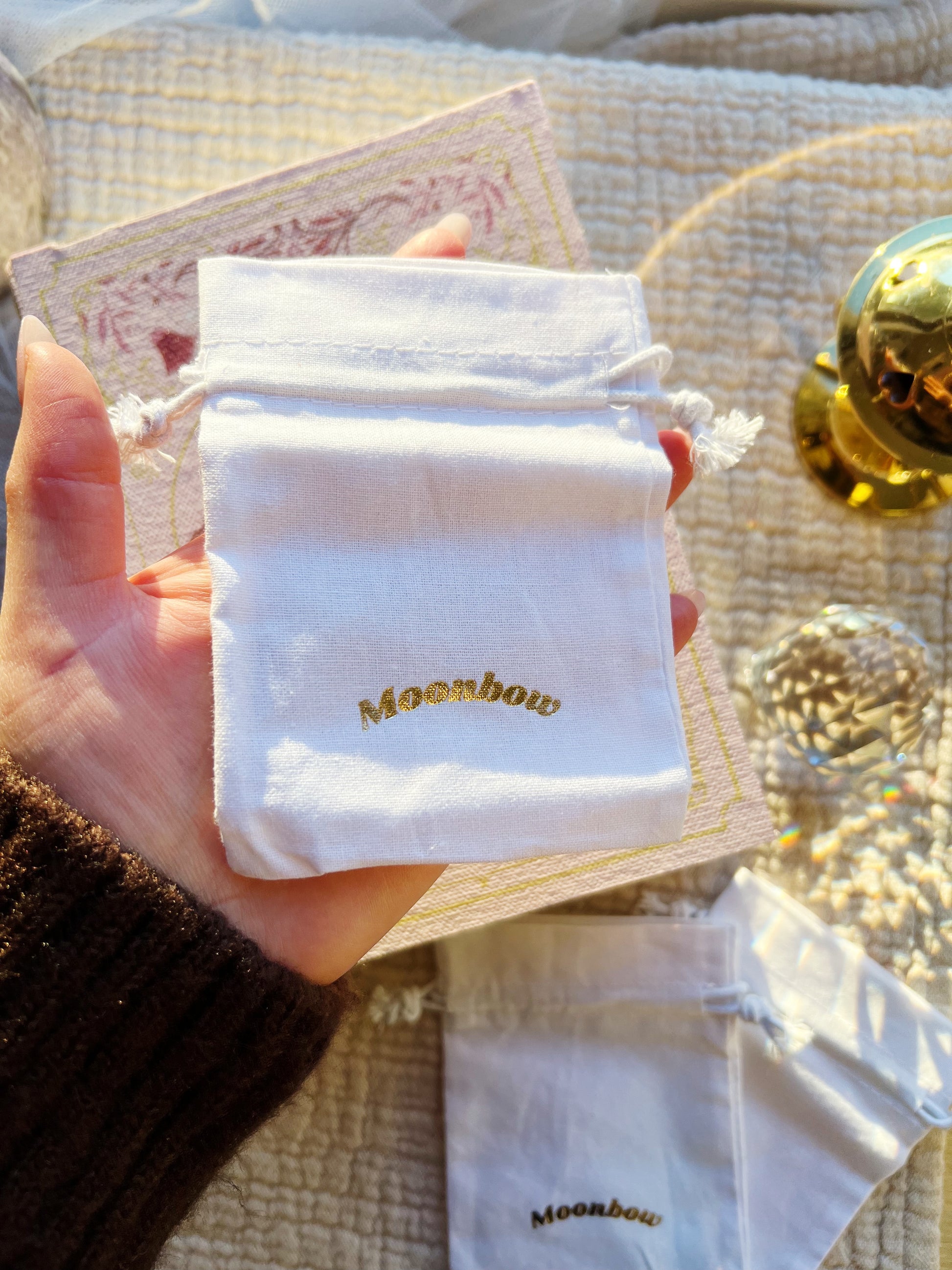 La denne vakre hvite posen bli hjemmet for dine mest verdifulle spirituelle skatter. Med sin kompakte størrelse på 9-12 cm er den perfekt til å oppbevare små krystaller, smykker, runer eller andre ritualverktøy du ønsker å holde trygt og samlet.