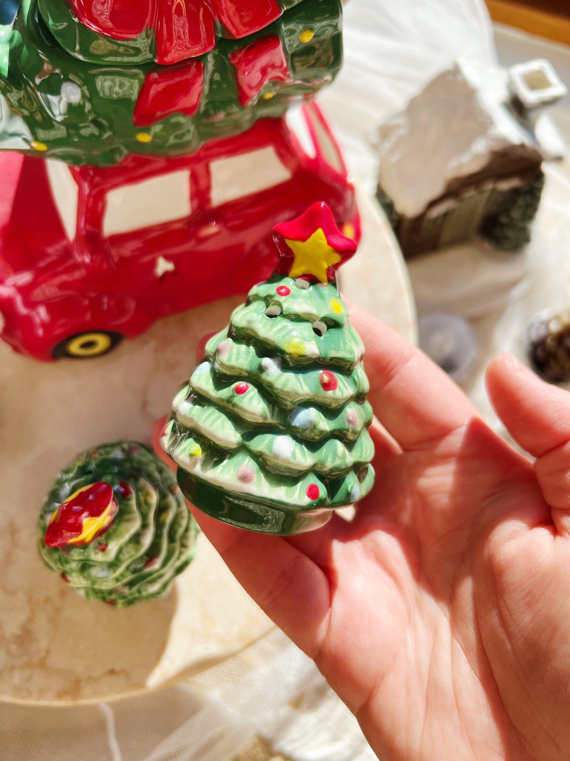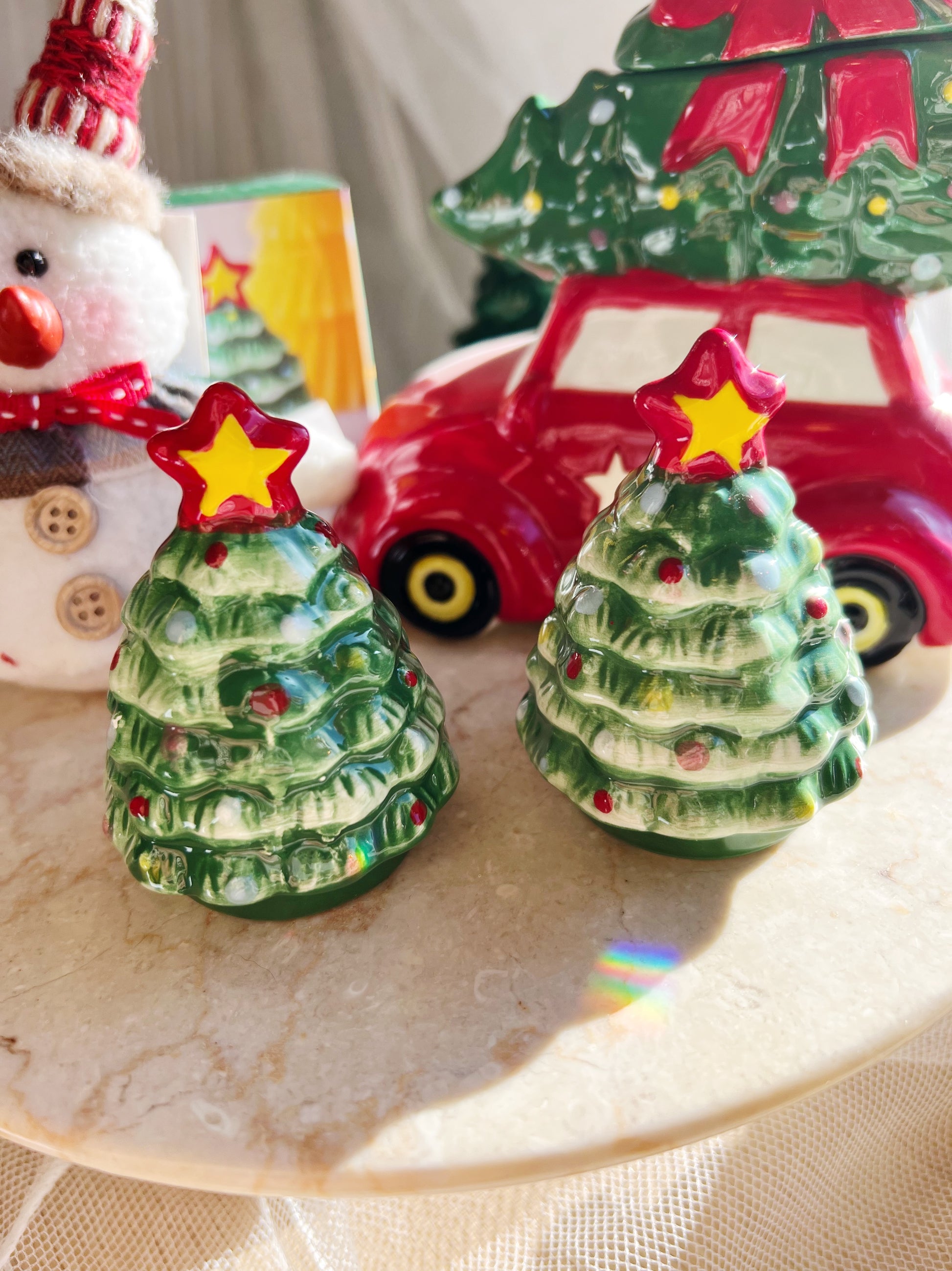 Disse herlige salt og pepperbøssene formet som klassiske juletrær er den perfekte prikken over i-en på julebordet. Med sitt retroinspirerte design og glade farger sprer de både smak og stemning og gjør hvert måltid litt mer magisk.