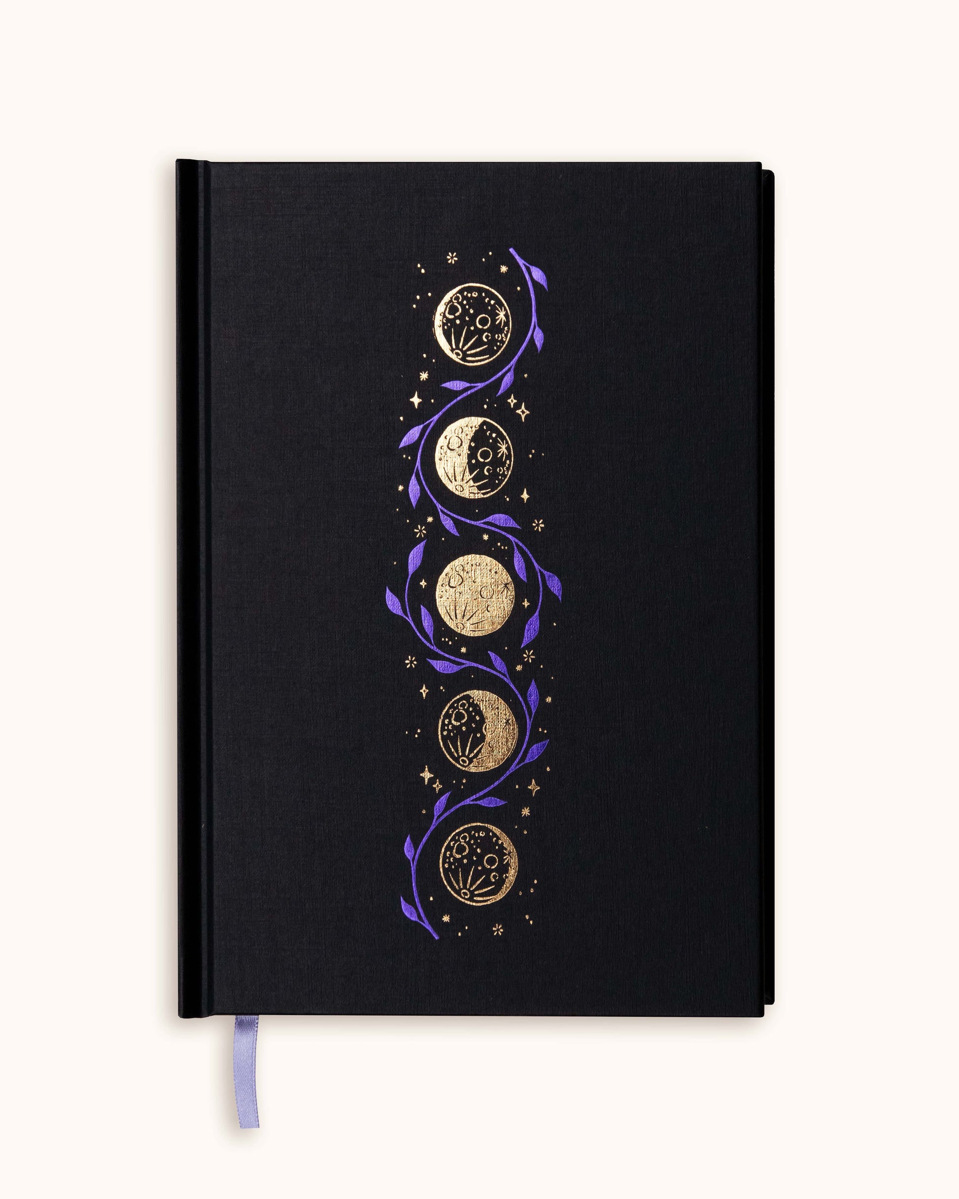 🌙 PHASES – A5-journal med hardt omslag, og nydelige detaljer i gull og syrinfolie