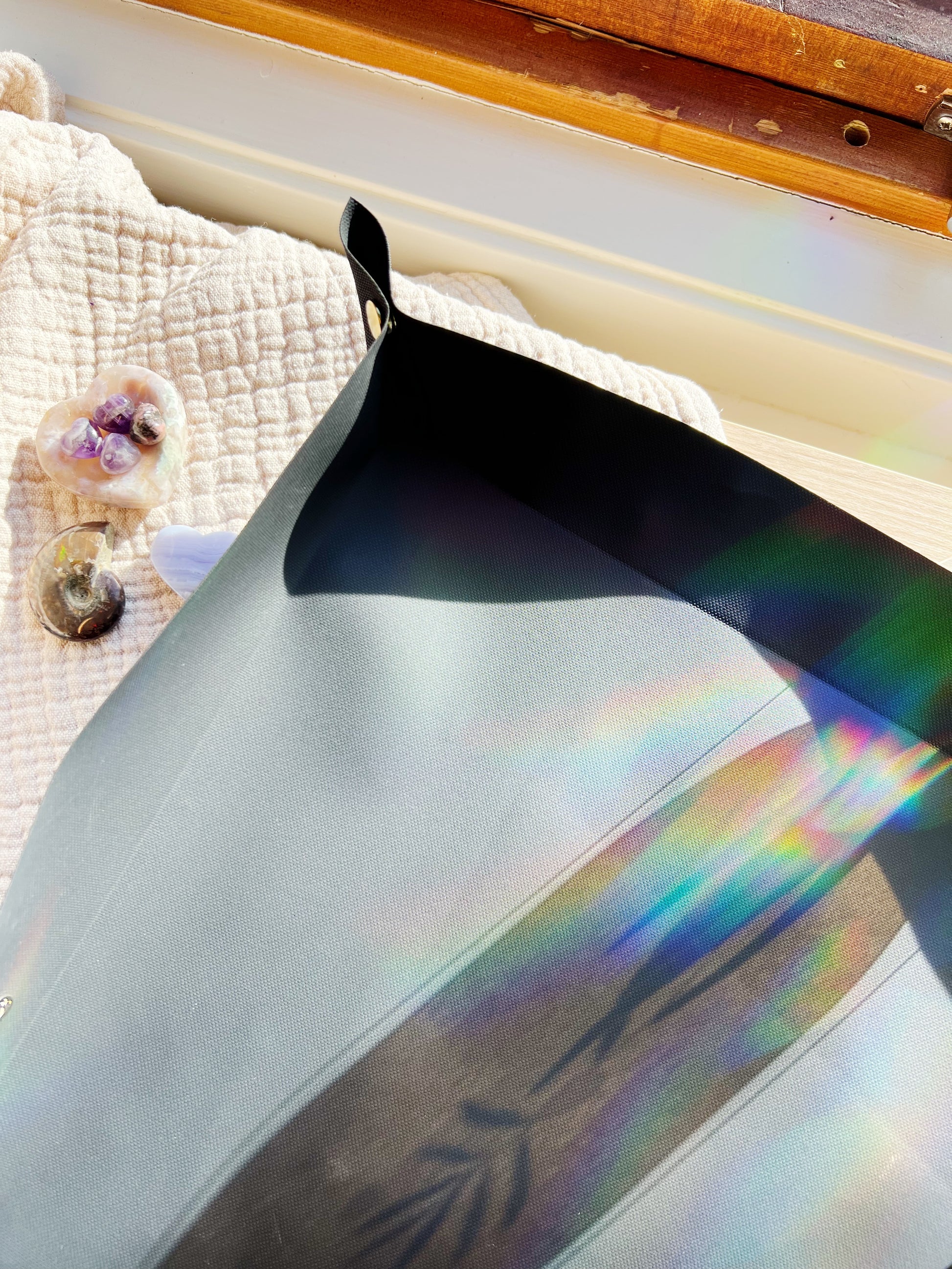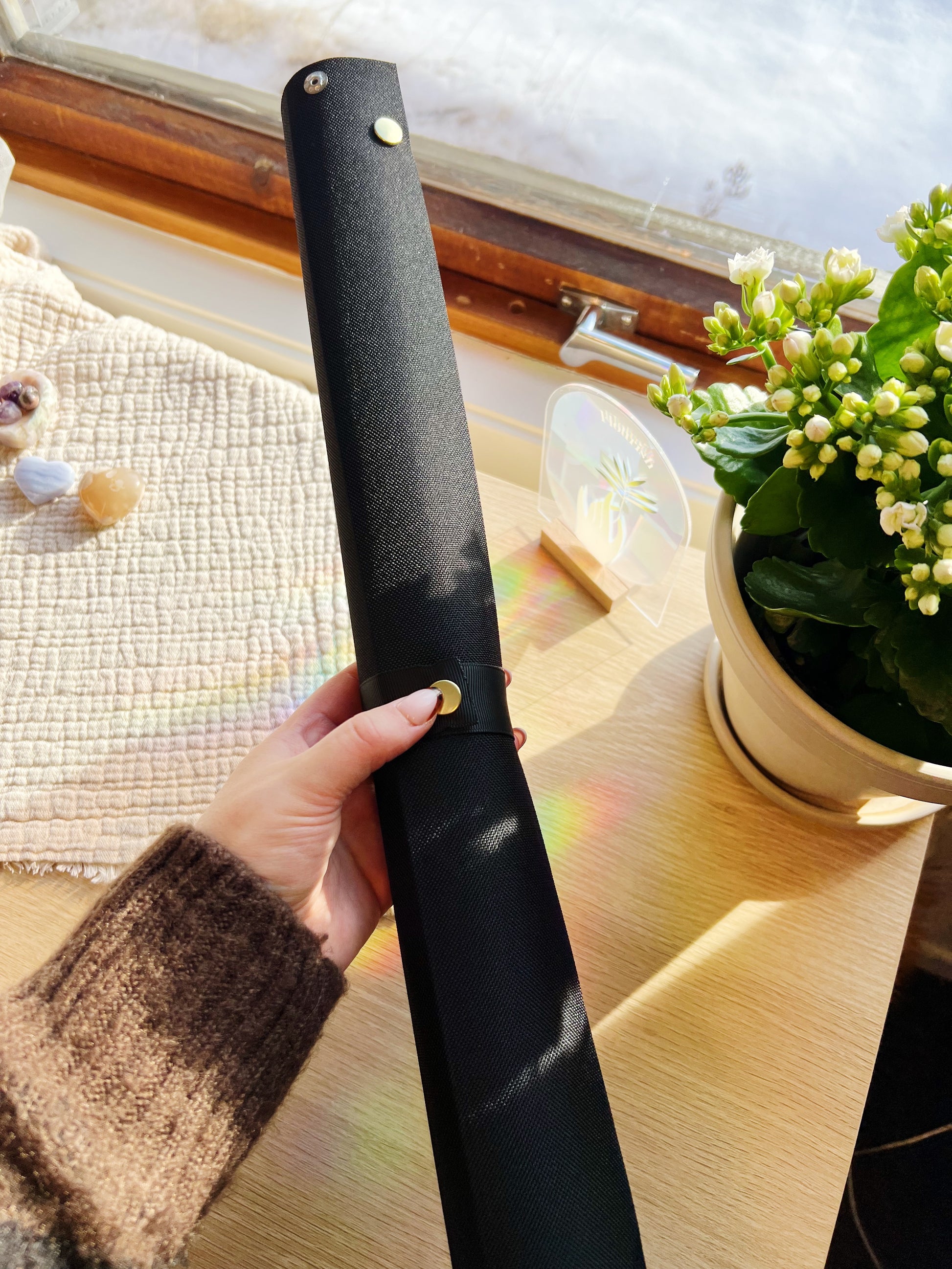 - 📦 Kompakt oppbevaring - Rulles sammen med vegansk svart bånd