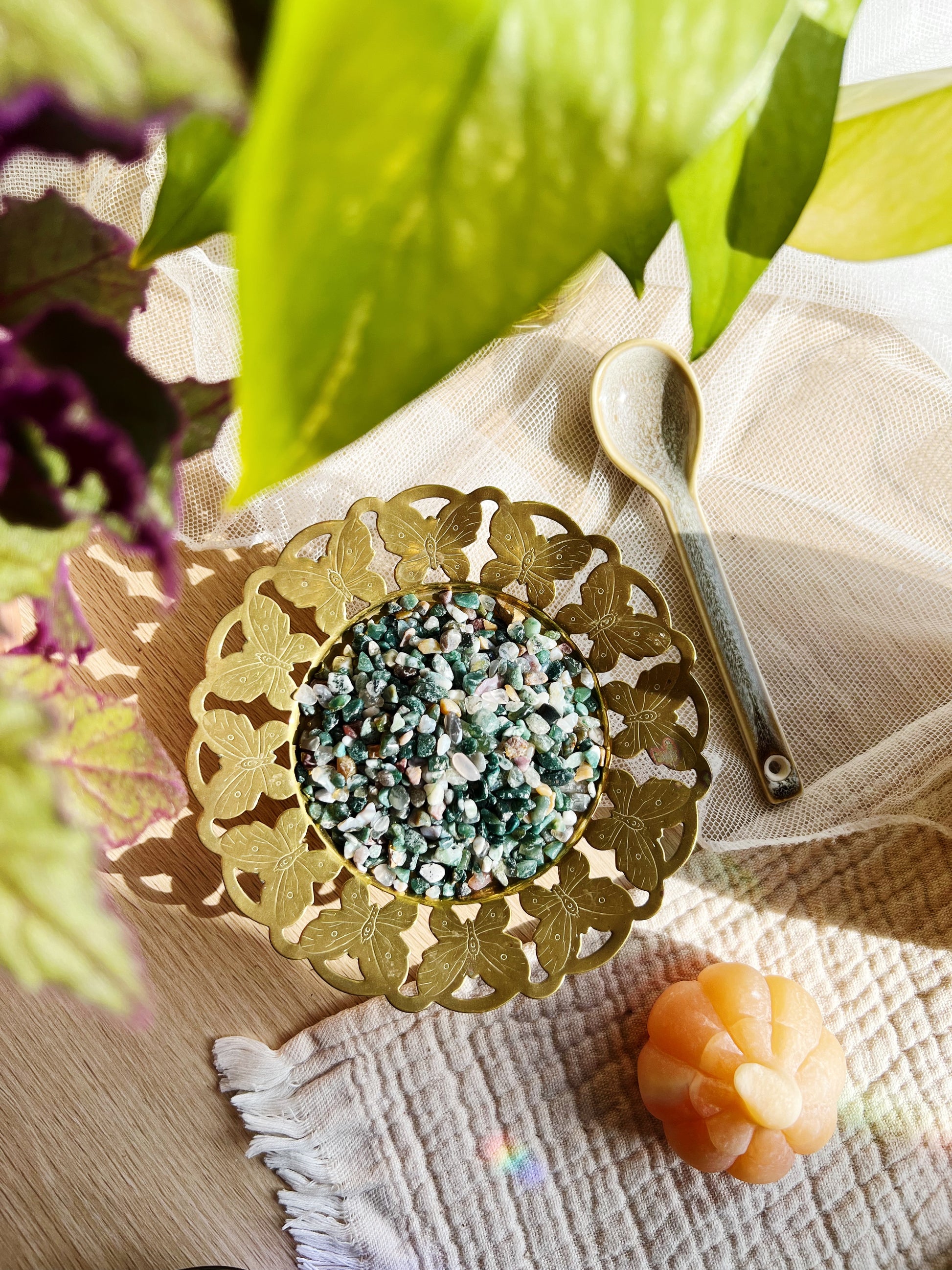 Disse mini chipsene er perfekte til små ritualer, krystallnett, alter, dekor eller som en liten påminnelse i lomma om at du er sterkere enn du tror.