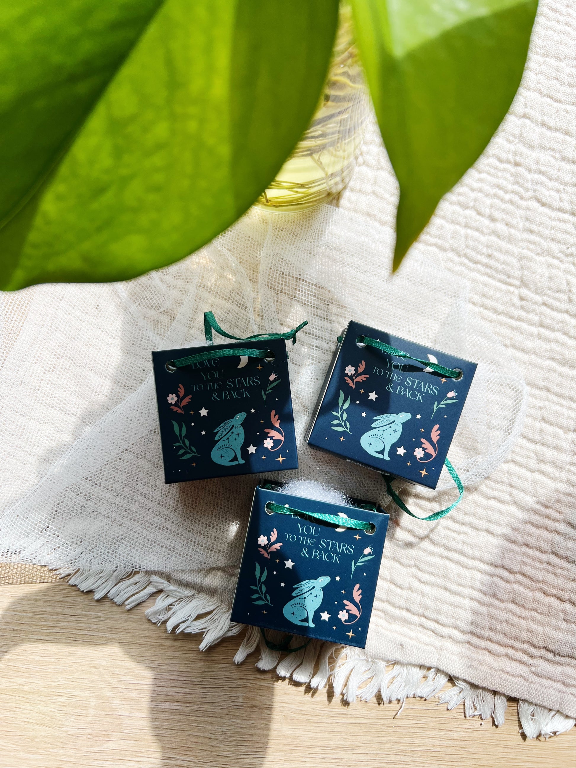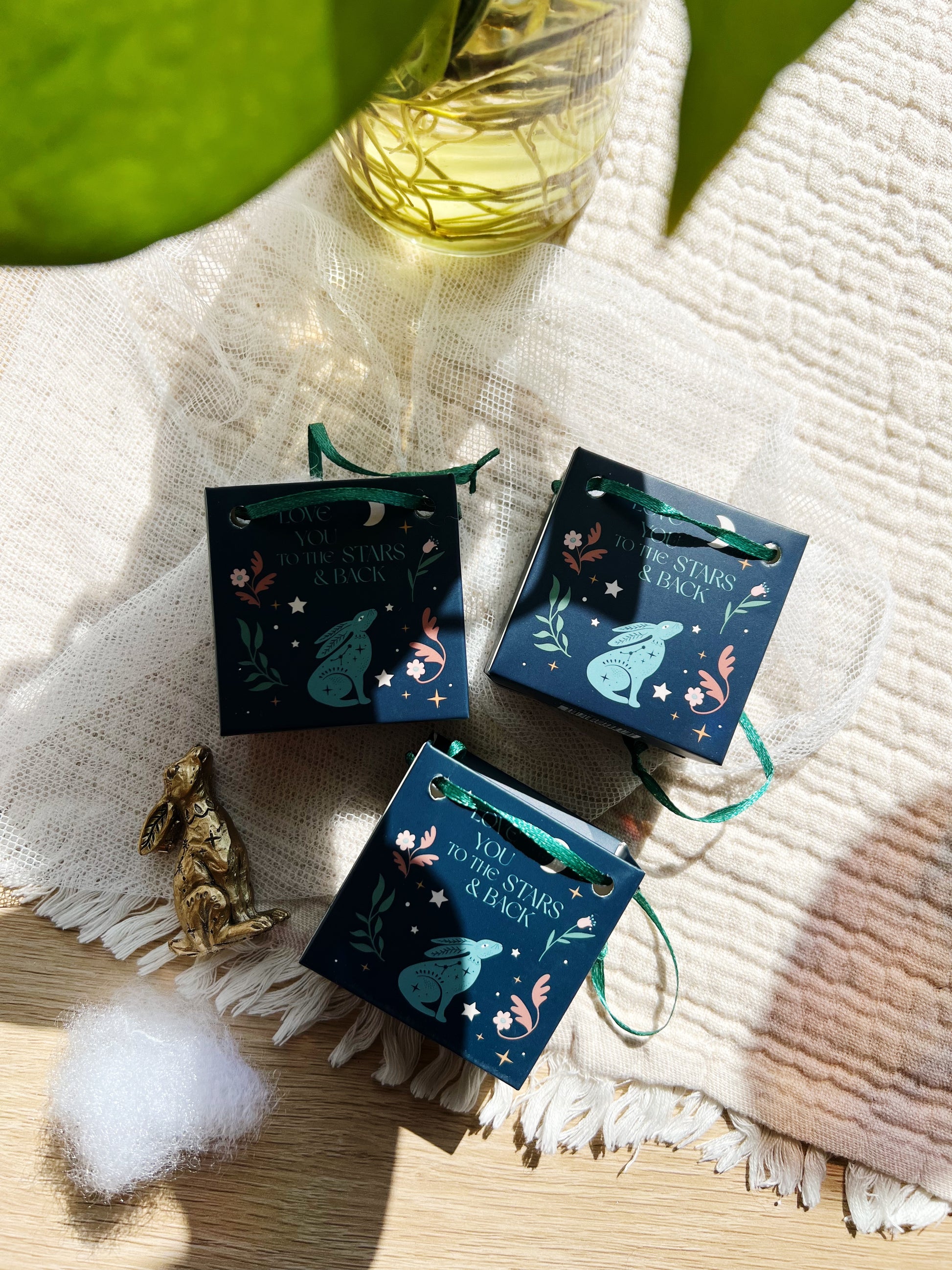 Disse vakre og heldige gyldne harene er perfekte som en gave med mening, enten til venner, familie eller deg selv. Hver hare er laget av høykvalitets resin og leveres i en liten dekorativ pose med teksten «Love You to the Stars and Back», sammen med en hare som kikker opp mot månen under en stjerneklar natt.
