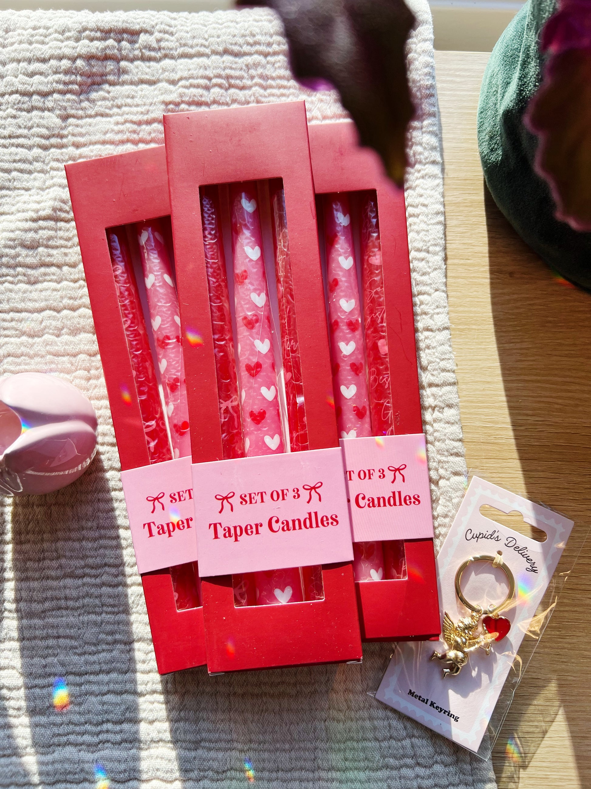 Sløyfe og Hjerte Valentins Kronelys - Sett med 3