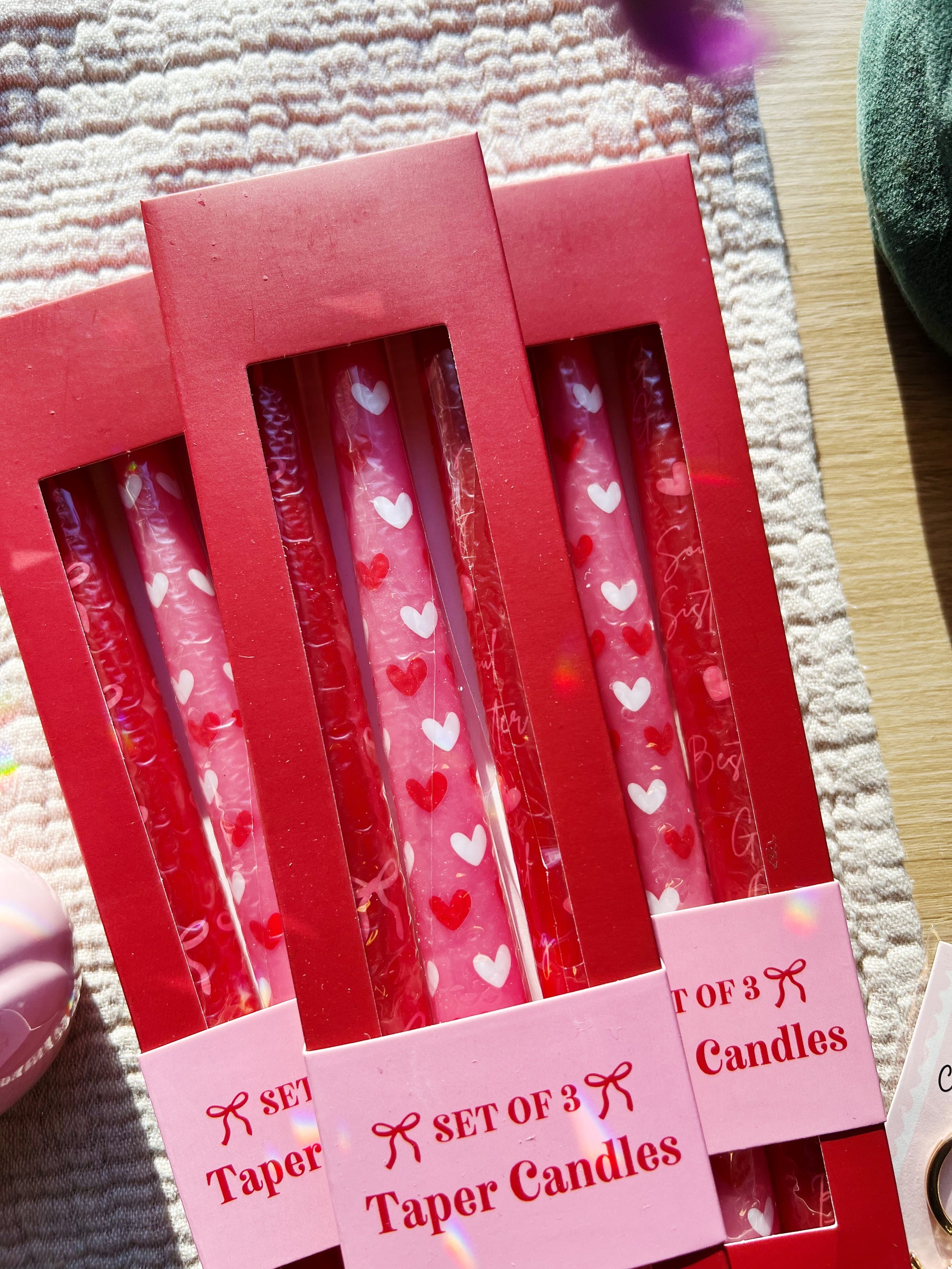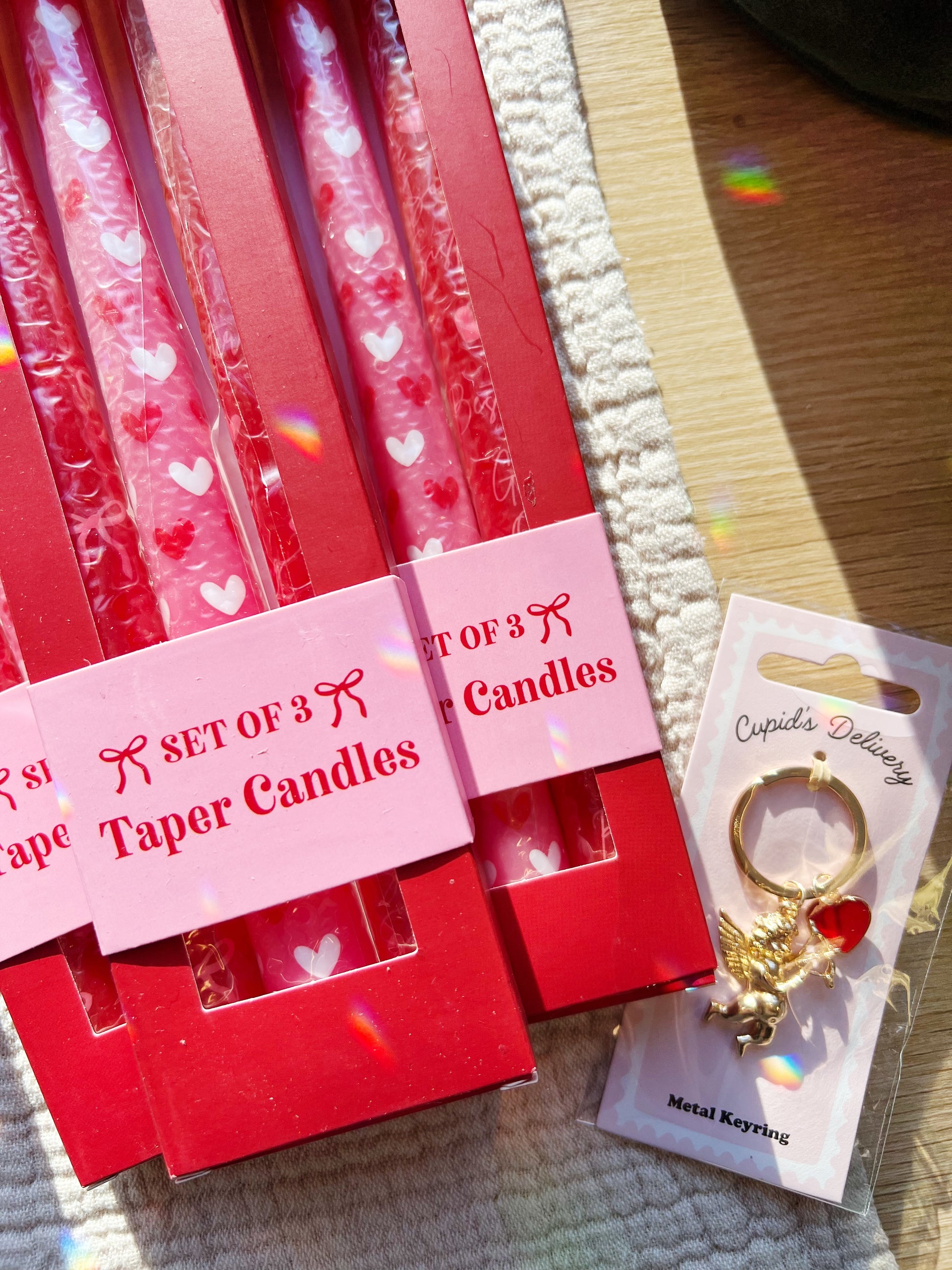 Dette lekne settet inneholder 3 kronelys dekorert med søte sløyfer og hjerter. Perfekt for Galentine's Day-fester, jentekvelder eller for å feire vennskap og selvkjærlighet. Med en brennetid på ca. 5 timer per lys, skaper disse en koselig og romantisk atmosfære.