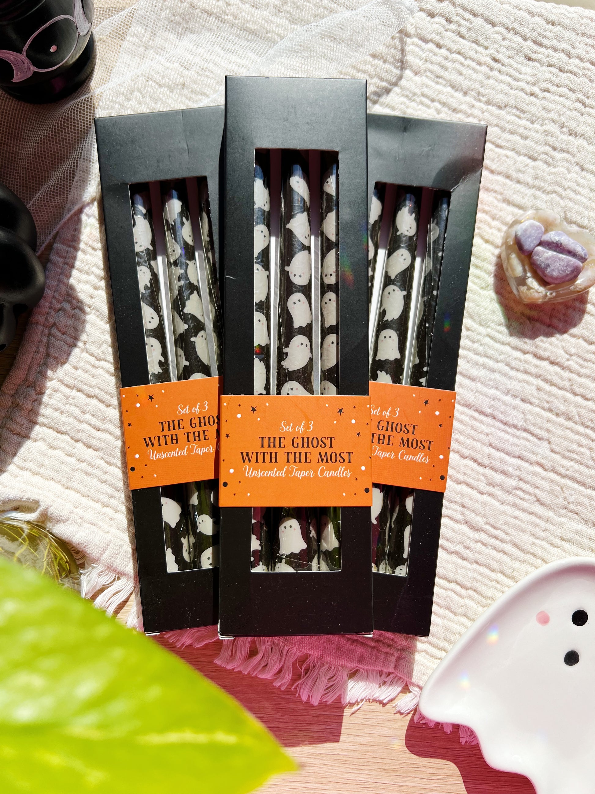 👻 Lys med Spøkelsesmotiv – Sett med 3 stk