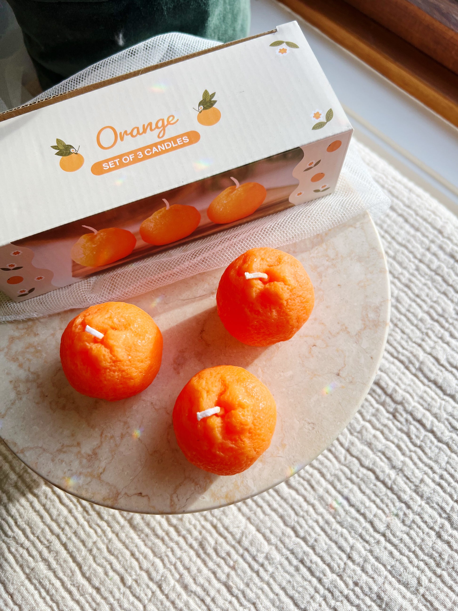 Appelsin Formet Stearinlys - Sett med 3