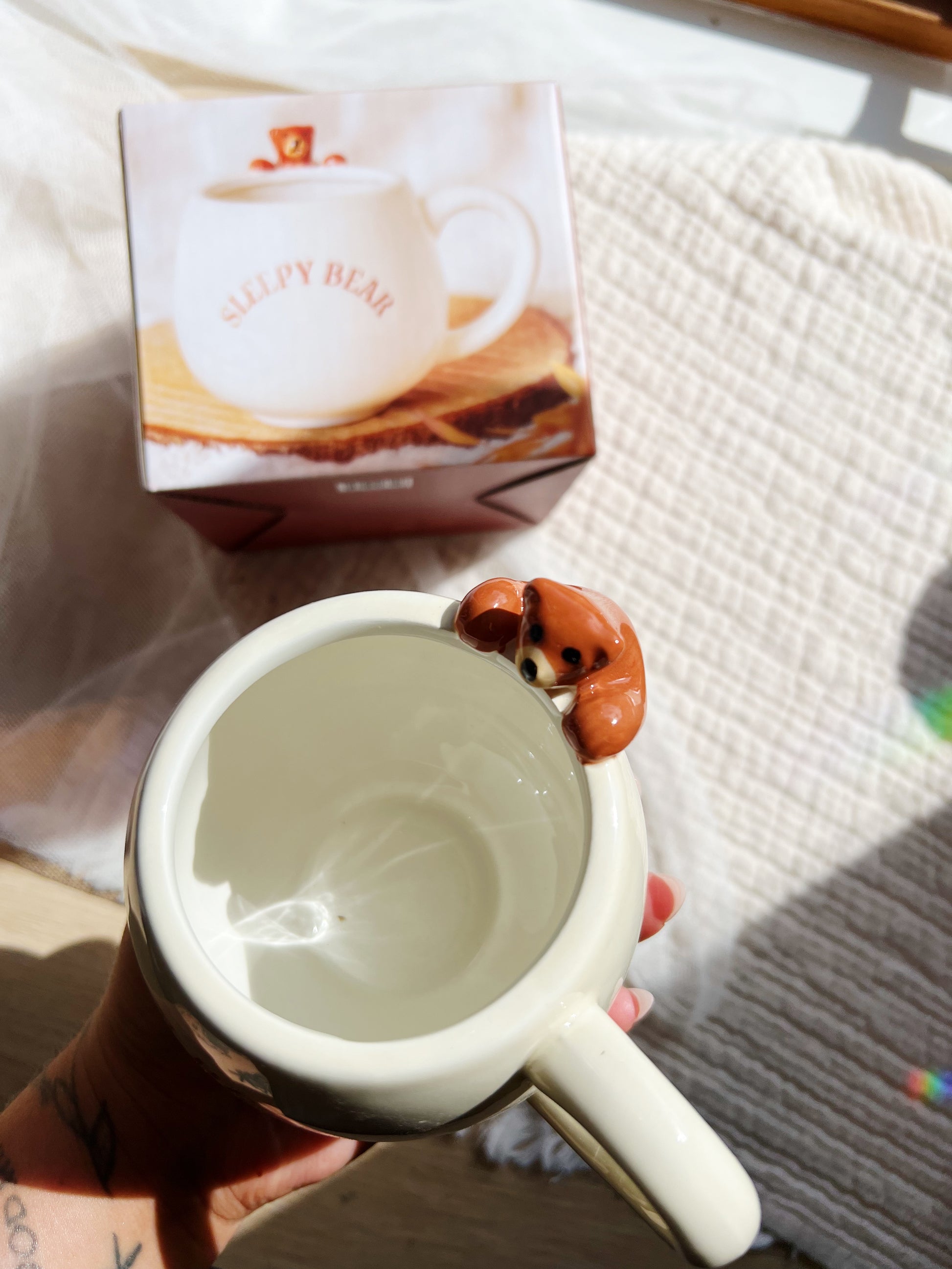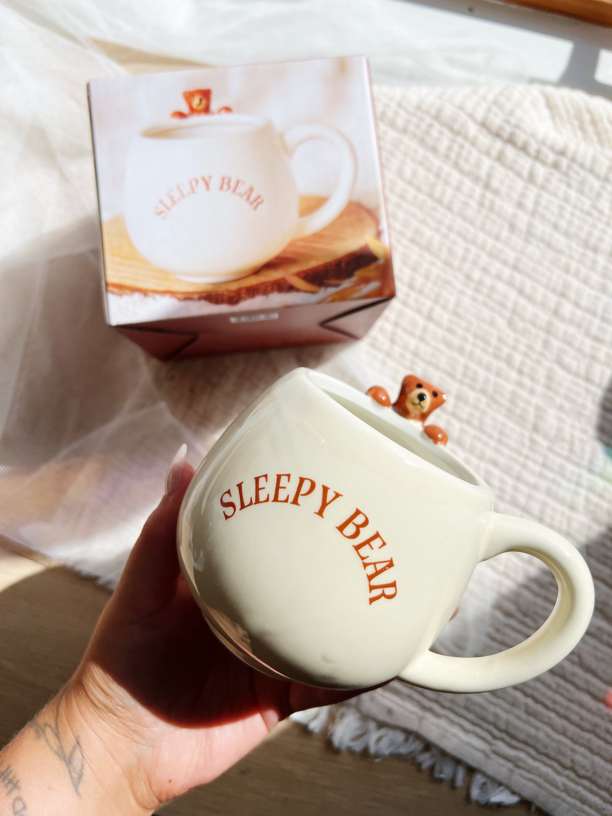 Start morgenen med en kopp som er like koselig som en bjørn i dvale! Dette runde, hvite keramikkrusen har teksten «Sleepy Bear» og en sjarmerende 3D-bjørn som slentrer dovent nedover siden. Passer for alle aldre, og er et unikt tilskudd til enhver krussamling. Ikke egnet for oppvaskmaskin, håndvask anbefales. 11 x 13.5 x 10.5 cm