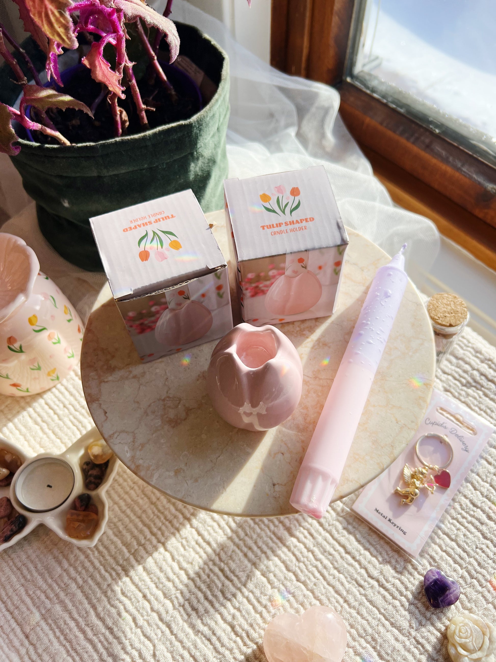 Denne sjarmerende lysestaken i form av en tulipan bringer vårens friske energi og blomstrende skjønnhet til hjemmet ditt. Perfekt for å skape en romantisk atmosfære med kronelys, eller som et vakkert dekorativt element på bordet eller hyllen.