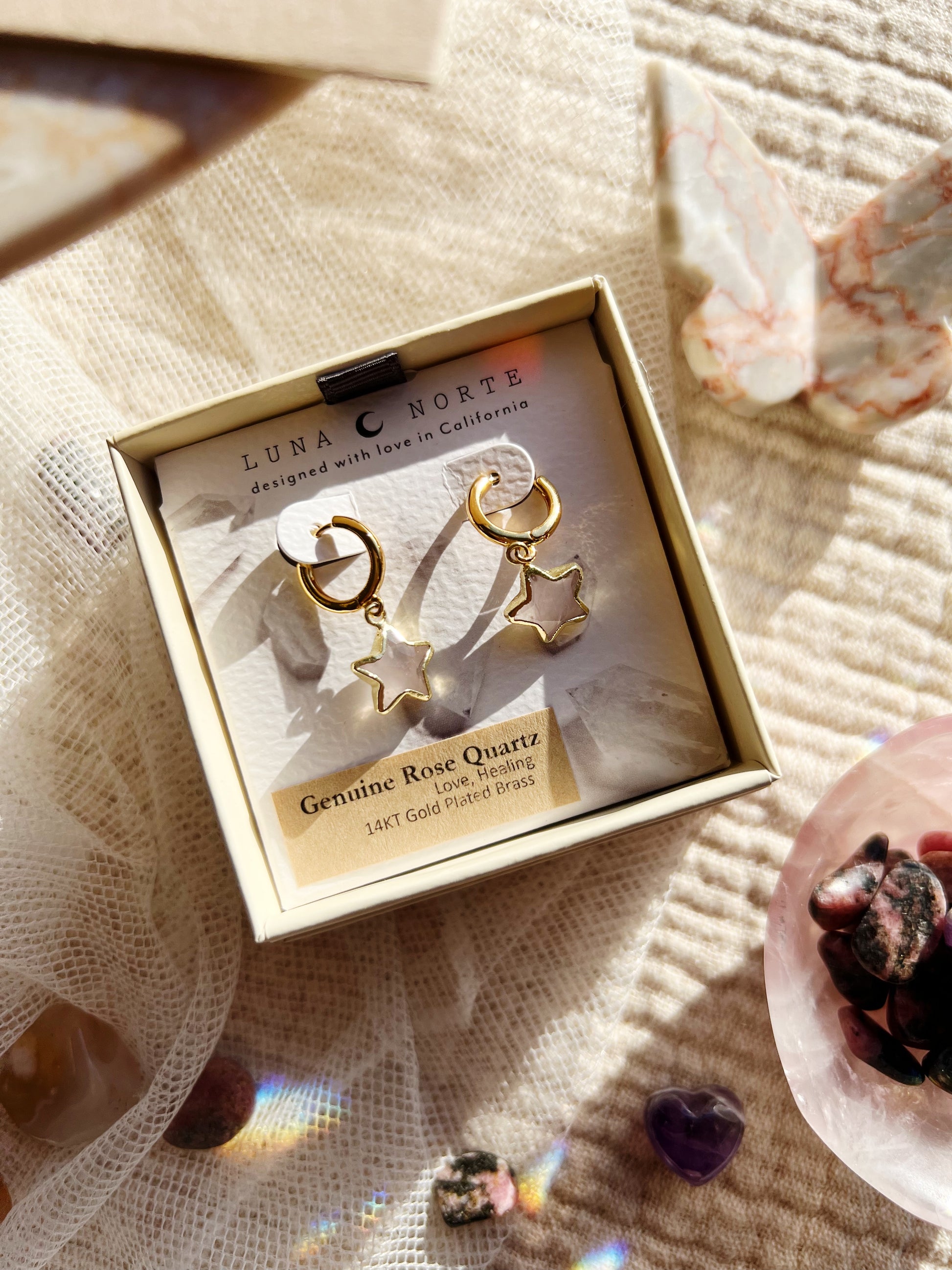 Star Gazing Huggie Hoop Øreringer - Rosenkvarts