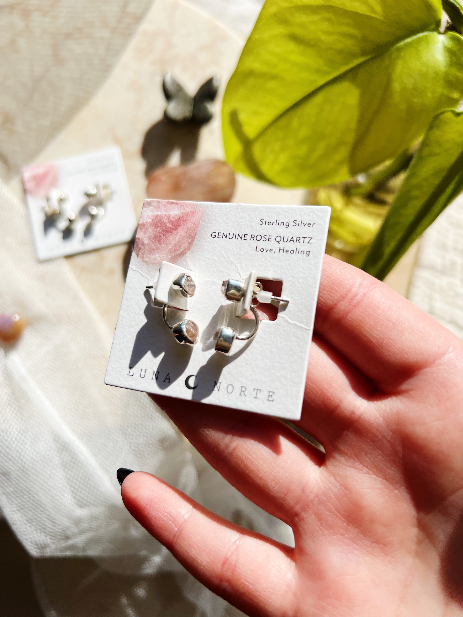 De klassiske stiftene får en spennende oppgradering med matchende ørekappe som gir deg doble muligheter! Ekte rosenkvarts omsluttet av 925 sterling sølv gjør disse øreringene ideelle – også for de med sensitive ører.